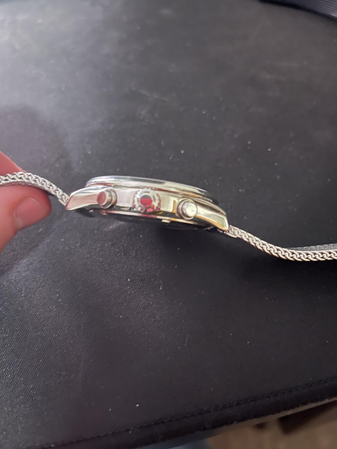 The watch runs great, but has a cracked crystal at 7. The watch looks clean when glancing at the time. It is priced with the crack in mind! https://imgur.com/a/jRVgIcj No trades Shipped from Northern Chicago Suburbs