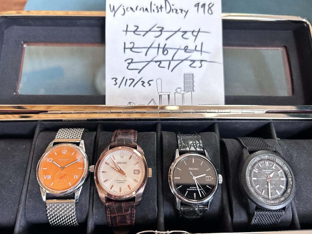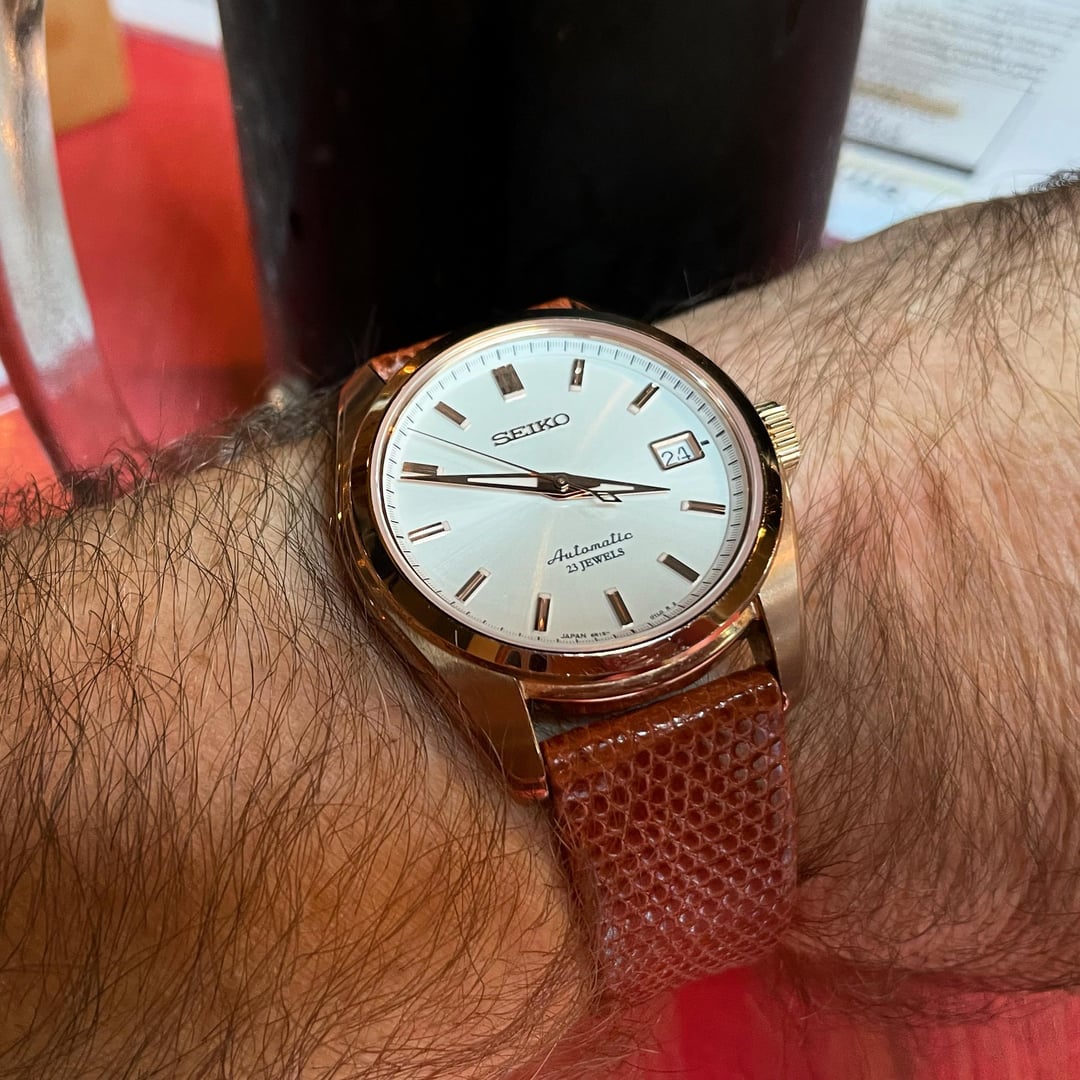**Christopher Ward C63 Colchester with 4 straps: $825 USD** CW hybrid rubber strap, CW Tide Ocean Strap, Crown & Buckle single pass, plus green Erika's Original MN strap. Box, extra straps, warranty card, manual, and COSC certification included. **Nomos Club Campus 729 Future Orange - 38mm: $1050 USD** Amazing piece, I just have too many orange watches. Specs: Diameter: 38.5mm • Lug to Lug: 48.9mm lug to lug • Thickness: 8.5 mm • Lug Width: 20mm • Water Resistance: 10 atm • Crystal: domed sapphire crystal glass • Movement: Nomos in-house Alpha manual wind. • Warranty Card • Wood box • Cleaning cloth **Seiko SCVS015 'Black Spark': $275 USD** 37.5mm case and 20mm lugs. This is the lesser known companion to the 'Blue Spark', including a simple black strap. **Seiko Sarb072: $675 USD** 38mm case and 20mm lugs. Beautiful rose gold case and ivory dial. includes full kit, OEM brown alligator deployment strap AND perfectly-matched Hirsch lizard strap. ***No trades, please.*** Shipping included CONUS. photo credit: [https://www.reddit.com/user/AudaciousCo/](https://www.reddit.com/user/AudaciousCo/) photo credit: [https://www.instagram.com/thespeedyshutter/](https://www.instagram.com/thespeedyshutter/)