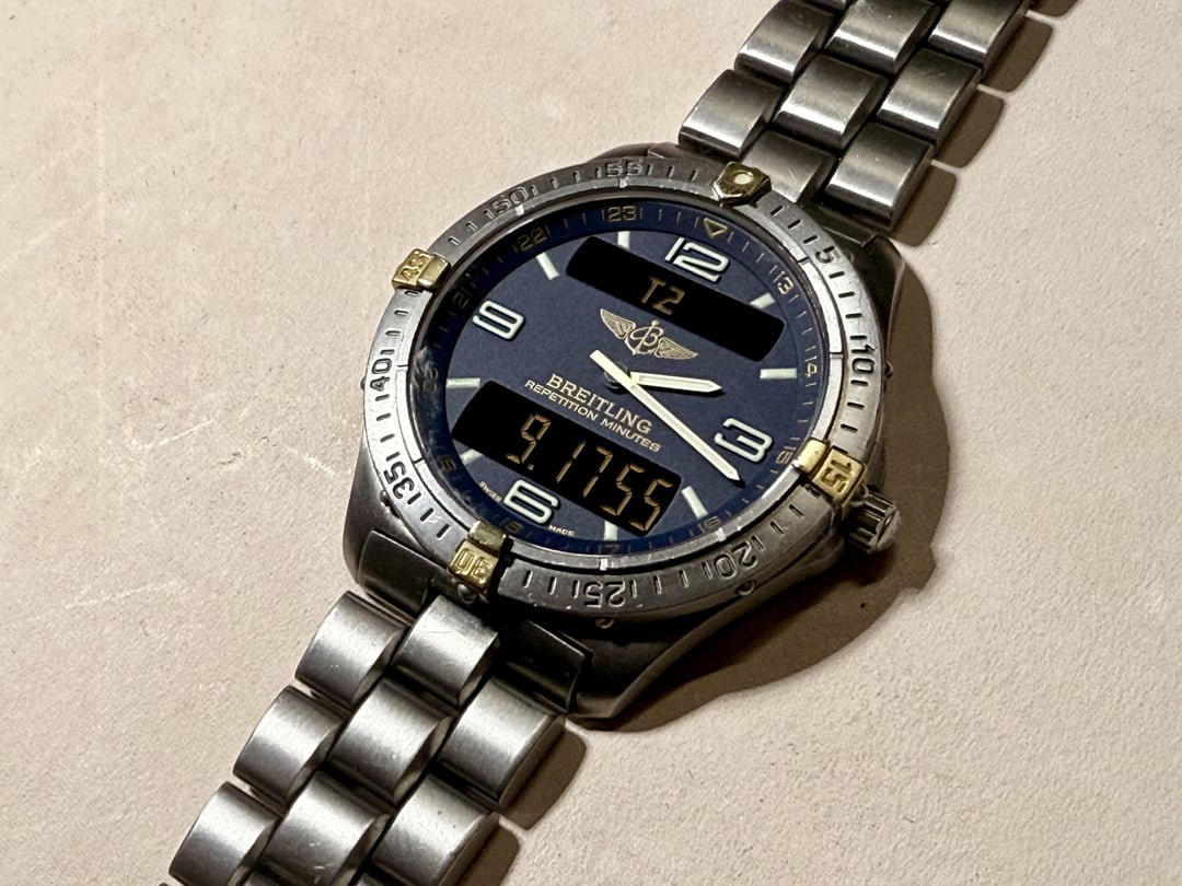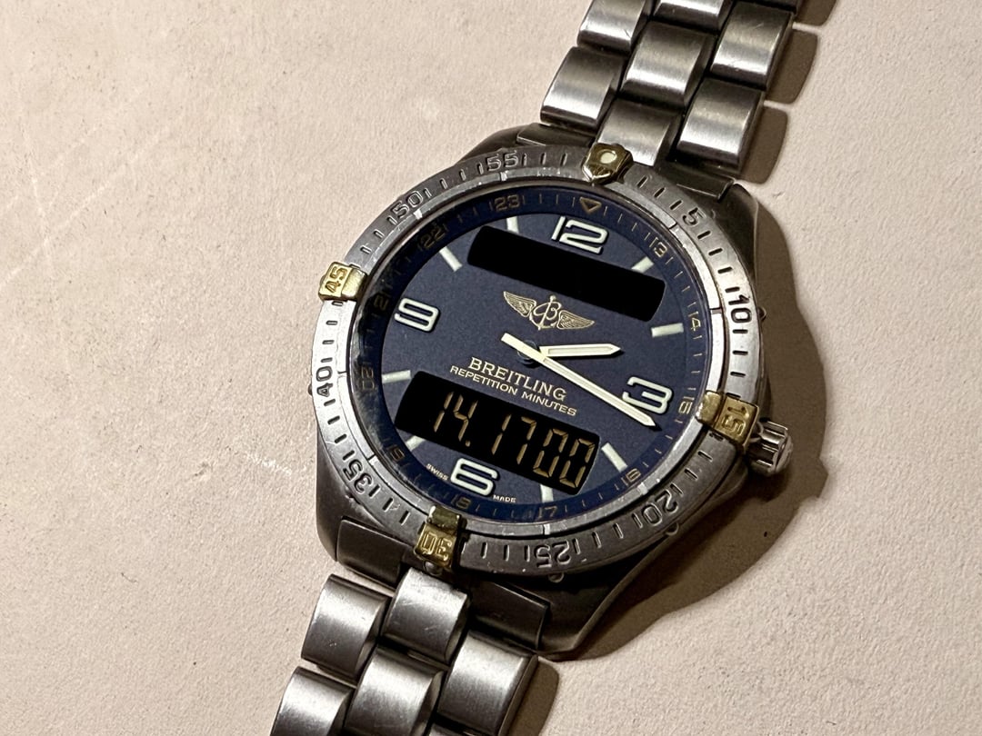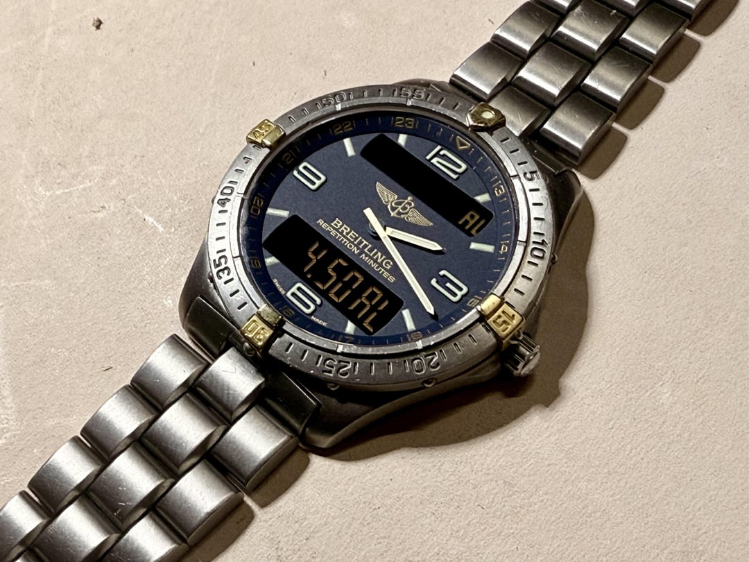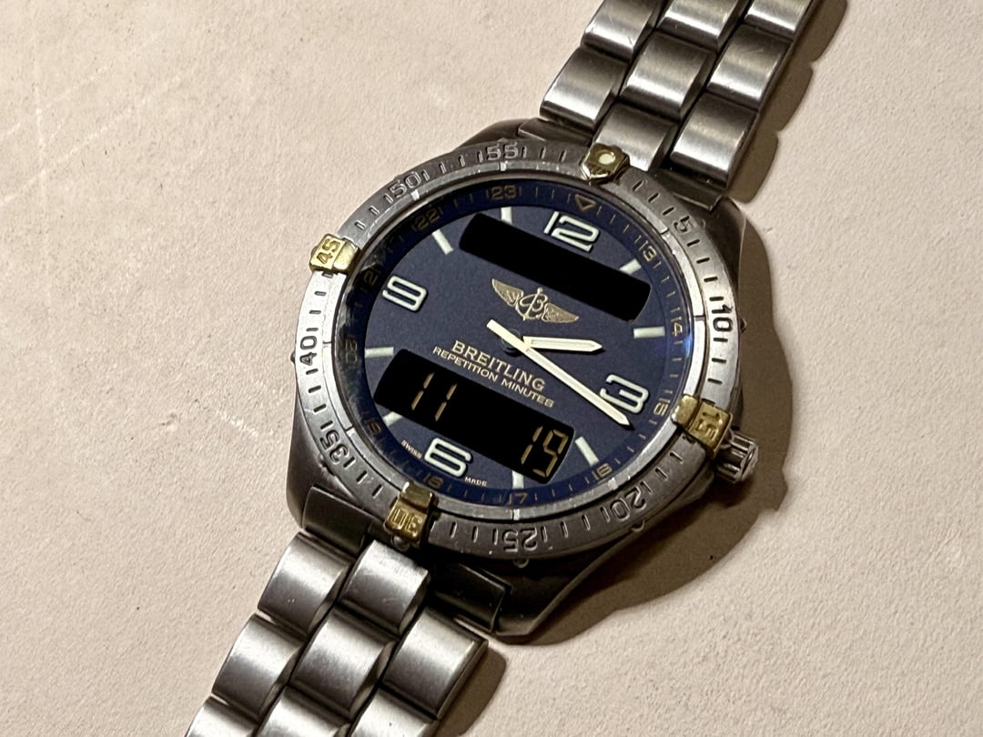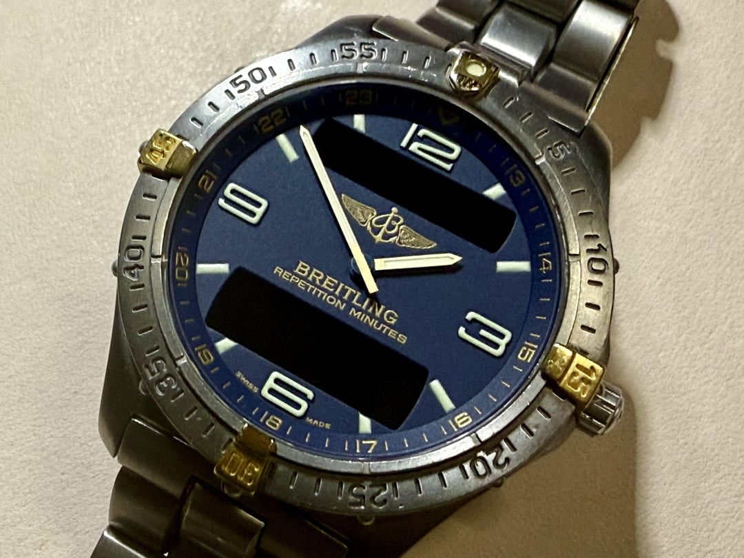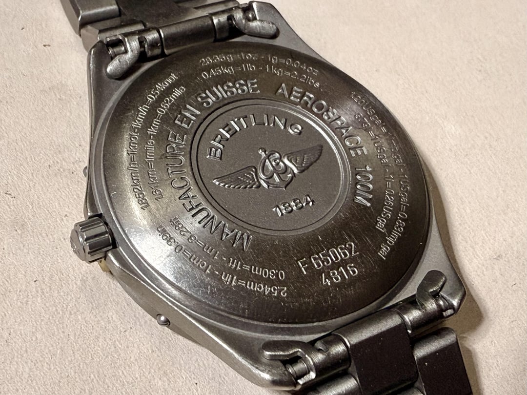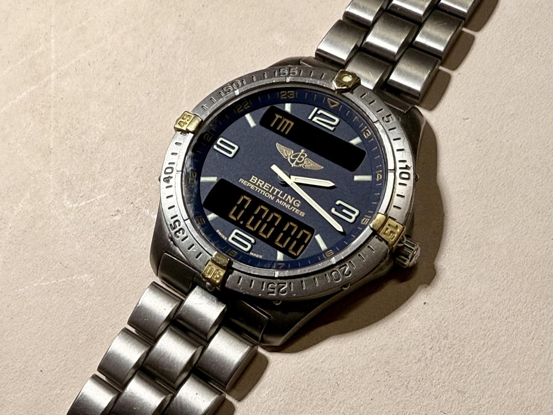Vintage Breitling Aerospace F65062 – Titanium Multifunction Pilot’s Watch “Sketchy dudes wear Breitling.” Selling my Breitling Aerospace F65062—a titanium pilot’s watch that combines analog precision with digital functionality. Lightweight, tough, and built for actual use, this model has been a favorite among pilots and collectors for decades. Condition: • Excellent shape with minimal wear on the case and bracelet. • LCD display is fully functional with no issues. • Super-LumiNova lume is bright and legible. • Bezel is firm, clicks cleanly, and isn’t loose. • Crown pusher is crisp and works perfectly. Comes on the original Breitling titanium bracelet with four micro-adjustments and two extra links for a precise fit. Specs: • Reference: F65062 • Case: 40mm lightweight titanium • Dial: Analog-digital hybrid with fully working LCD display • Bezel: Bi-directional, tight with solid clicks • Bracelet: Original Breitling titanium bracelet with micro-adjustments & extra links • Functions: Chronograph, countdown timer, second time zone, alarm, perpetual calendar Price: $1850 OBO Shipping & Payment: • Ships worldwide via FedEx. • International buyers: Be aware of any customs duties or import fees—these are your responsibility. Check the pictures carefully—what you see is what you get. Open to offers, so shoot your best one and we’ll see if we can make a deal. I can accept Zelle, PayPal, Cashapp, or Venmo, and will ship FedEx.