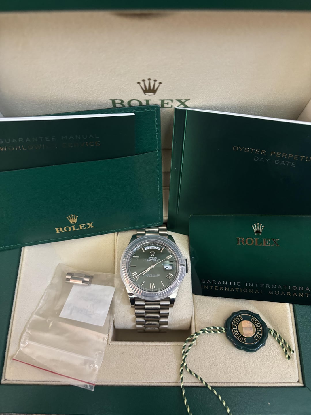 español![[wts]2023 full set Rolex day date 40 olive dial Roman numeral 1](https://cdn-cf.watchpatrol.net/600x600/img/full/cffd2a1a5b273916864ce718c85c5ef1eef1221b.jpg)