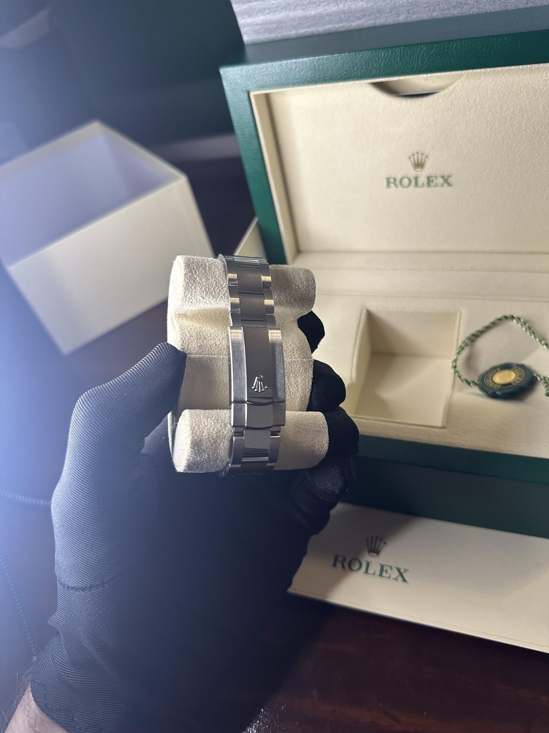 For sale is a brand new 2025 Rolex Datejust reference #126334 on an oyster bracelet with a fluted bezel and the very sleek rhodium dial. This watch comes as a full set complete with everything. The watch is fully linked. This watch is completely unworn and unsized. The warrant card is freshly dated. Will include the green Rolex bag as well as the new Rolex book. Sales receipt can be provided upon request. Fully insured shipping provided via FedEx anywhere in the US🇺🇸 Price. $11,950 shipped. Payment can be made via bank wire, Zelle, or crypto. Please reach out for any further questions or information. Thanks!