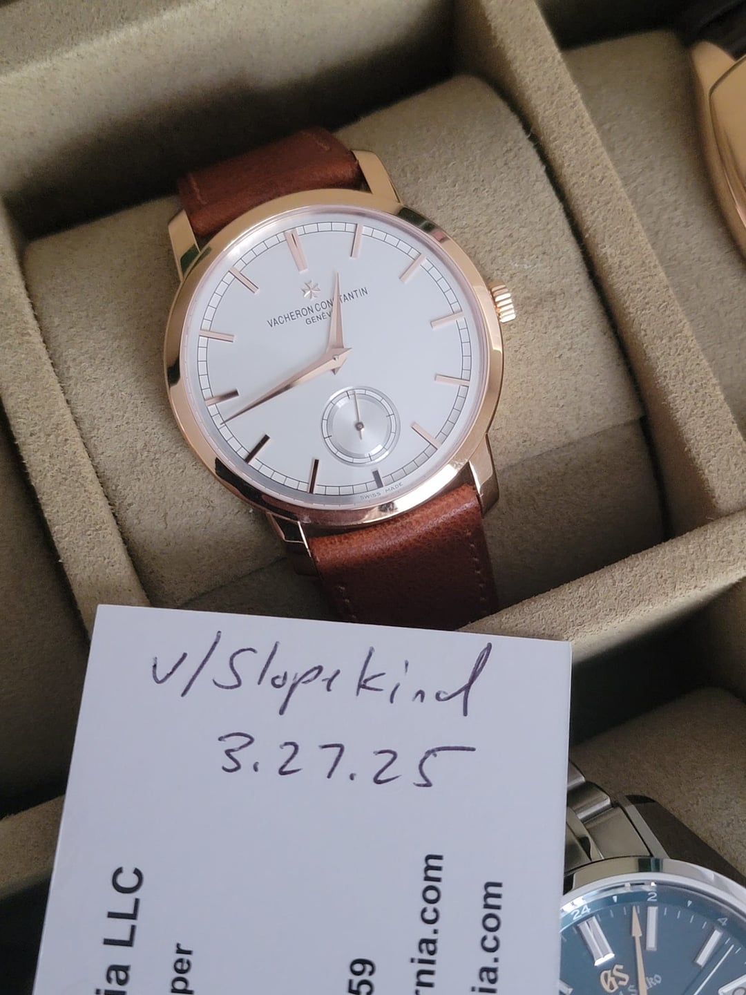 Vacheron Constantin Traditionnelle Manual-Winding Ref: 82172/000R-9382 38 mm Pink Gold This watch is in superb condition with very light wear shown. It was just fully serviced at VC which was requested by me. I requested the watch to not be polished as it only has very little signs of wear. Will come with service documents dated 3/2025, VC travel case, and aftermarket strap shown on the watch. Will also come with the OEM Pink Gold buckle. Retail $23.5k plus tax Price = $11,799 shipped Pics & Timestamp = [https://imgur.com/a/yG31BgM](https://imgur.com/a/yG31BgM) IG = watchfornia Cheers, Adam