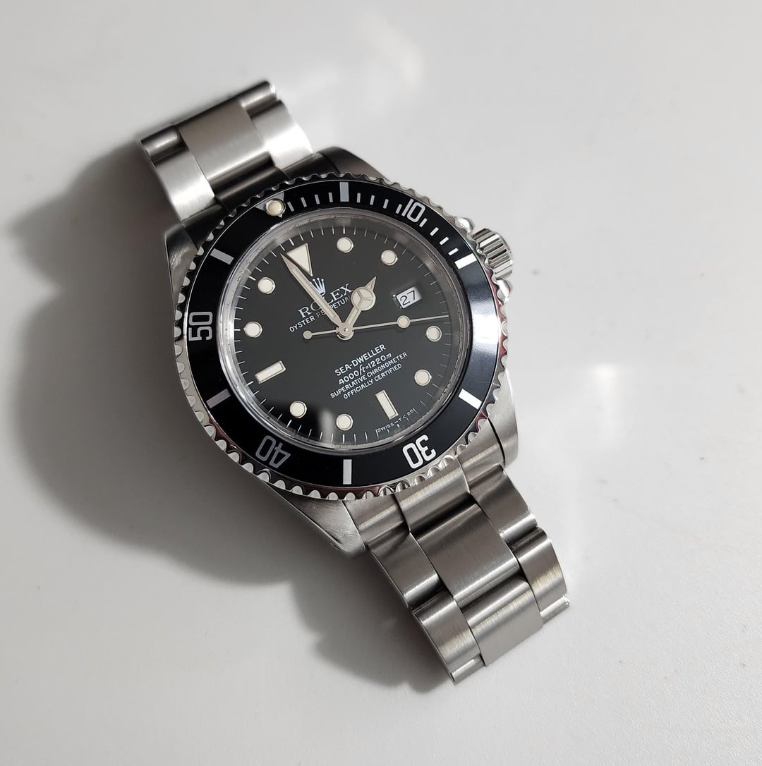 Available is a Rolex 16600 Sea-Dweller from 1997 in excellent pre owned condition. Perhaps some minor marks on the case, bezel and bracelet but I will let the pictures do the talking. It's in amazing shape. Dial shows that that it's a Tritium dial model, but less Tritium than earlier model, therefore the markers aren't quite patinated (yet?) as other tritium dials of the same period. The Sea-Dweller was serviced last year in May 2024 at my very reputable independent watchmaker in Bangkok and running well within COSC and is good to go for a long time. It's a breathtaking piece. This is a tough one to list, but have to enact my strict policies on watches getting worn or not, and I have been downsizing as I prep for another nomad period. Sized for my 7.5" wrist with plenty of play. Watch only. As we say in the business, buy the seller, not the watch. Please rest assured you are seeing an authentic, serviced and vetted, well running (and great looking!) Rolex Sea-Dweller. In addition to the linked reviews on my name, I have been an honest Watchuseek member since 2008. [https://www.watchuseek.com/search/9125354/?q=watchyourself&t=post&c\[nodes\]\[0\]=63&c\[searchProfileName\]=control&c\[showFilter\]=visibleOnly&o=relevance](https://www.watchuseek.com/search/9125354/?q=watchyourself&t=post&c[nodes][0]=63&c[searchProfileName]=control&c[showFilter]=visibleOnly&o=relevance) $7500 shipped CONUS