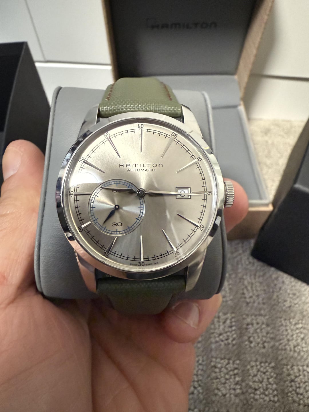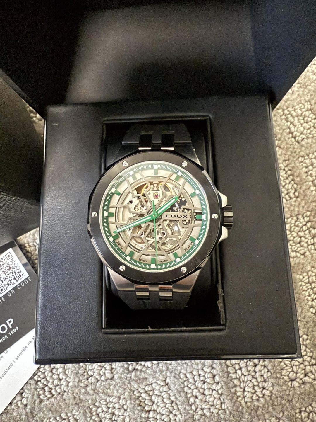 Hey so every watch will be complete with original box and papers. Each watch is in mint condition with no issues. 1. Doxa Sub 200 complete with Box and papers. 2024 purchased from Watches of Switzerland with 3 year warranty. Comes with 3 straps. Both the doxa rubber and rice strap with all links. Additional black strapco rubber included. $1150 2. Edox Limited Green Skeleton with box and papers Less then 4 months old. Mint condition $1050 3. Hamilton Railroad American Classic, Box and papers included. 2 Straps included. Original leather and strapco green deployment. Mint condition $600 4. Luminox Mother of Pearl dial. 2 straps included Pink and stainless. Mint condition. With box $480 5. D1 Milano Ultra thin. Smoke Edition all metal. Complete with box $325 6. Spinnaker 50 Phantoms second edition from first batch release. Number 202 out of 888. Full Kit, Never worn, an outstanding piece. $750 Shipping to CONUS included, Outside of US additional fee may apply depending on rate. Zelle, Zenmo accepted References available on other platforms. FaceTime or video chat verifications available Downsizing collection for other piece Thanks for your time