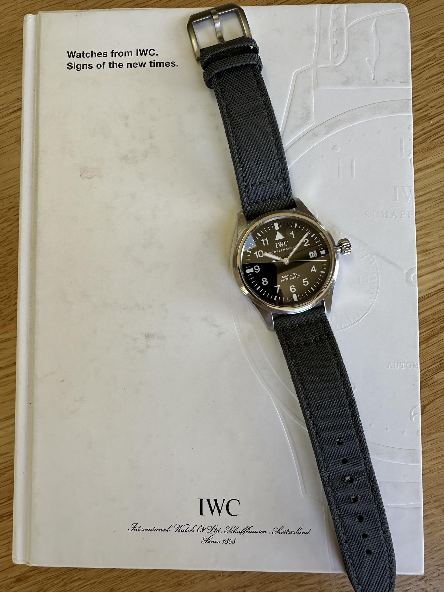 Hello, for sale is a very nice example of the classic IWC Mark XV Pilot’s Watch IW325301 that has been freshly serviced in March 2025. I sent this to IWC authorized dealer Feldmar Watch Co in Los Angeles, who then sent to IWC for a full movement service and waterproof test. I specifically requested that they don’t polish the case, as both the case and sapphire crystal are clean outside of normal light wear. The servicing cost $900. The watch comes with a new black IWC watch case and a beautiful blue quick-change strap. Price is **$3,550** USD, which includes fully insured shipping within the Continental USA. Local pickup also possible in Los Angeles, CA. I’d be happy to answer any questions via DM, text, email, voice call, or Facetime. [Album](https://imgur.com/a/iwc-mark-xv-pilot-s-watch-iw325301-freshly-serviced-march-2025-3-800-l78ANis)