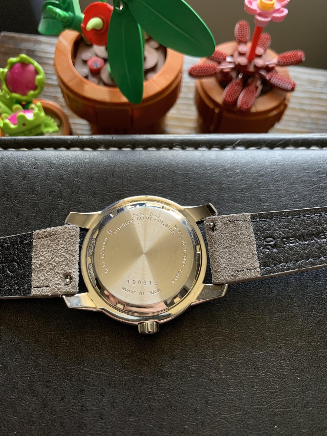 Hello everyone today I’m selling my what seems to be a very hard to come by seiko. Even though this is the second one listed within the last couple days! The first one sold yesterday which was beautiful! It’s Very cool watch that I wish I could keep. This one does have the auto relay function which stops the movement to save power and then all you have to do it shake or quickly move the watch to start it up again. The hands will then dance back to the current time position!!! You can find a video on YouTube or on this sub with the watch doing this. I currently can’t as the watch hasn’t stopped yet unfortunately lol. This watch was also made in Japan. Condition: The watch is in great condition with not very much to note. If anything some very minor hairline scratches on the titanium case. The watch also comes on a brand new suede strap! Supposedly the watch was also recently serviced by one of the last owners! No box or papers. Watch only. As is. Dimensions : Diameter: 38mm Thickness: 9.4 Lug to lug: 44 Lug width: 20 Price and payment: This watch is priced at 230 shipped within conus! Slightly negotiable if you have an offer! Payment via PayPal or Zelle please. Thanks for taking a look!