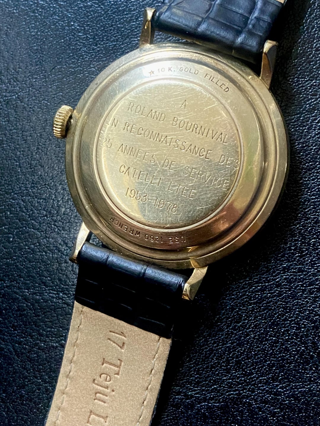 $375 Shipped in North America (PayPal preferred) Will entertain trades (34mm-38mm, nothing specific I’m looking for so I’m open to offers) Longines Admiral 5 Star 10k gold filled Running great (Serviced a year and a half ago) (Can’t get a movement shot as I don’t have the specific wrench to open it up) Quick set date working perfectly. 111LC movement 34mm 40mm lug to lug 17mm lug width