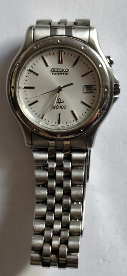 Je vends cette Seiko Kinetic SQ100 d'un diamètre de 36mm. Elle démarre, mais il faudrait changer la batterie. Prix 50€ fpi
