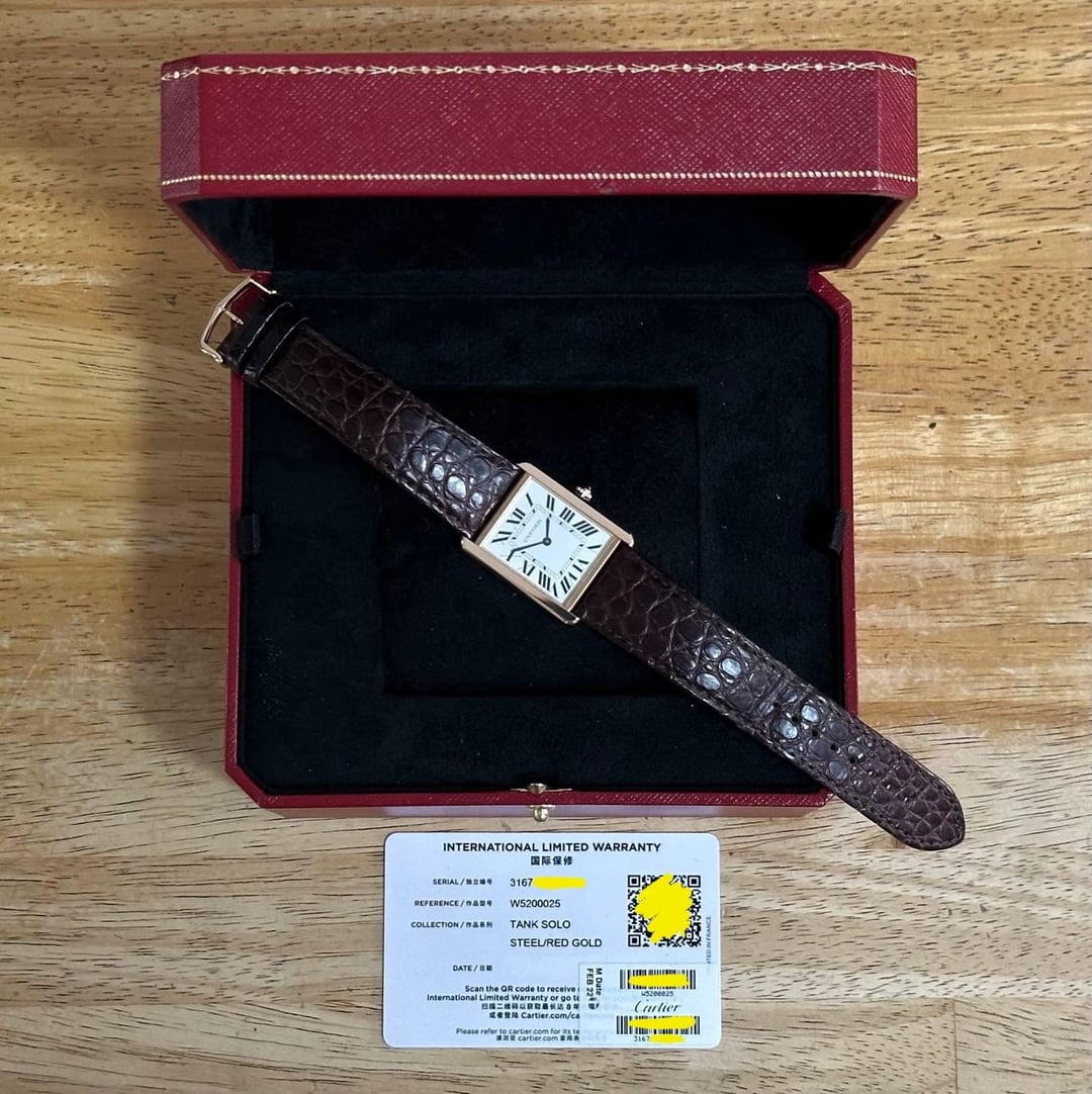 **DETAILS** [Timestamp](https://drive.google.com/file/d/1lXuTt1e73hUCgGcuHbQeUTvEx6yyZFSl/view?usp=drivesdk) https://drive.google.com/file/d/1lXuTt1e73hUCgGcuHbQeUTvEx6yyZFSl/view?usp=drivesdk [Images](https://drive.google.com/drive/folders/1Vz-5e92Sdecoejm1gPeR-YOUqn1E5son) https://drive.google.com/drive/folders/1Vz-5e92Sdecoejm1gPeR-YOUqn1E5son Asking: **USD 4,600** ‼️ I will take care of all customs and import fees for the buyer. Price includes fully-insured international shipping via DHL/Fedex. Payment via Bank Wire / Credit Card (+ 4.5%) / Crypto [USDC / USDT Stables] Happy to jump on a facetime/video call anytime. Location: Singapore 🇸🇬 References: See feedback on my recent transaction! Check me out on [Instagram here](https://www.instagram.com/gdtimepteltd?igsh=MXc5NmRhN2dlcjJzYQ%3D%3D&utm_source=qr ) 😉. **DESCRIPTION** Hi all, up for sales is my Cartier Tank Solo, ref. 3167. This piece is a 18k solid rose gold watch, Large model. Our take: One of, if not the most iconic watch ever made. The Tank has been worn by countless celebrities over the years. Instantly recognisable at a glance. Fantastic size for the gentleman and ladies. Watch is in excellent, mint condition. Hallmarks are sharp and crisp. Original Cartier leather strap is in excellent condition. Movement is keeping excellent time. Buttery smooth to set time. Watch comes in full complete set. Dated 2020. Under Cartier international warranty till 2028, verifiable on Cartier’s website. Original Cartier leather strap and rose gold buckle. Price is slightly negotiable for sincere buyers. PM me for more info ‼️ PLUS I will be taking care of the shipping and import taxes on buyer’s side.