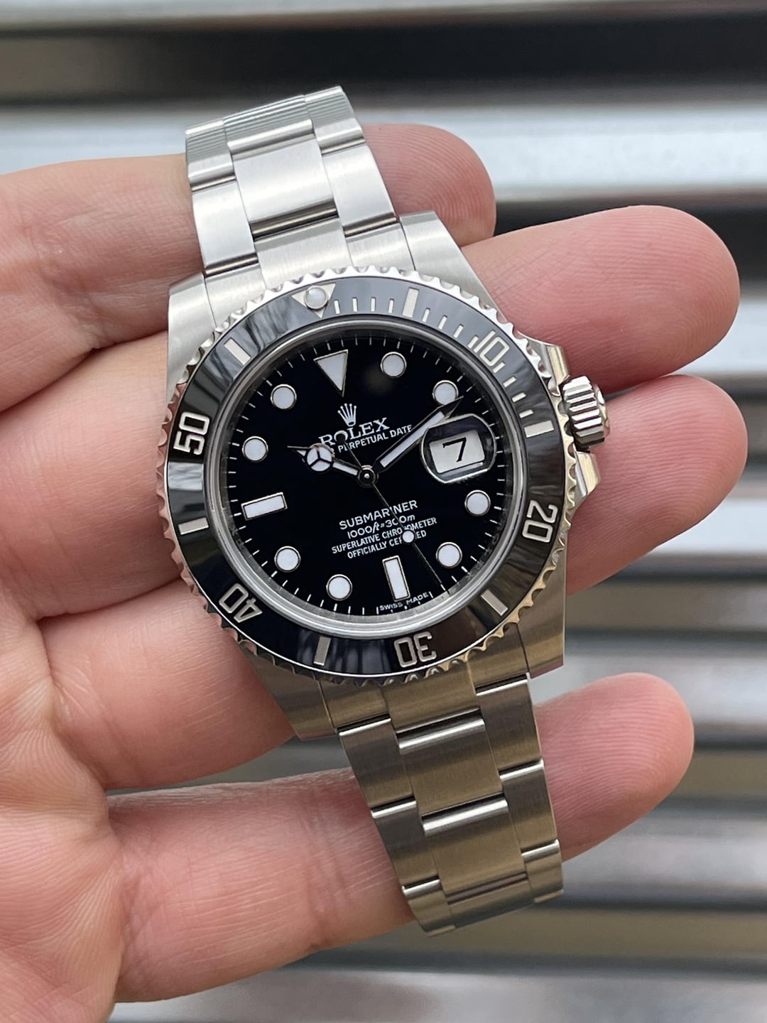 Available is a clean Ceramic Rolex Submariner Date Reference 116610LN in excellent condition. Reference number:116610LN Year : December 7, 2015 💰1️⃣0️⃣9️⃣0️⃣0️⃣➕✈️ Includes WATCH with BOX & CARD, HAND TAG, BOOKLET, BEZEL PROTECTOR (please see second pic for everything that’s included) The watch is in overall excellent pre-owned condition - see pics for details.Case remains in great shape with no wear. Clean dial and hands. Crystal is clean with no chips. Sharp case with thick lugs. Bezel is clean. Tight bracelet with a clean finish. The coronet is nice and thick on the clasp. Watch remains in great condition all around! 11.5 links on bracelet Fits about a 7.5 inch wrist 💰1️⃣0️⃣9️⃣0️⃣0️⃣➕✈️ I accept Zelle/Wire. Shipped with fully insured shipping once payment clears, no exceptions. I have plenty of references across Facebook groups as well as Reddit feedback. Follow me on IG for more deals: @215watches Thank you for your time!! [photo album](https://imgur.com/a/Y5mGKUL) [time stamp](https://imgur.com/a/n2MXeqz)