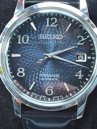 Seiko Presage Cocktail Time SRPE43 Blue Dial Selling my blue Seiko Presage with the mesmerizing blue guilloche style dial. Purchased it second-hand last year but I am consolidating my collection and it is not getting enough wrist time. Description and specs from Seiko website: Seiko Presage Cocktail Time. Offering the finest in Japanese mechanical watchmaking, the Presage Collection blends precision technology with superior craftsmanship and design. Taking a more playful approach to the popular Cocktail theme line, this delightful watch is part of a group reflecting the casual charm of a vacation bar. Inspired by the Old Clock cocktail, its gradated deep blue dial features a pressed pattern reminiscent of the light reflected by a classic cocktail glass, as well as numerals styled to recall the printing on a vintage liquor label. The 23-jewel movement, with manual and automatic winding capability, beats at a frequency of 21,600 vibrations per hour, with a power reserve of approximately 41 hours. Crafted of stainless steel, this distinctive timepiece includes a calendar, box-shaped crystal, screwdown see-through caseback, smooth blue leather strap and tri-fold push button release clasp. 5 bar, 50M Water Resistant. Specs: CASE DIMENSIONS: DIAMETER: 38.5mm THICKNESS: 11.8mm LENGTH: 45.4mm MOVEMENT: Automatic Caliber 4R35m, 21,600 vibrations per hour, 23 jewels, Power reserve: approximately 41 hours CASE: Stainless steel case CRYSTAL: Box-shaped Hardlex crystal WATER RESISTANCE: 5 bar, 50 meters (165 feet) DIAL COLOR: Blue STRAP: Blue leather strap LUG WIDTH: 20mm Comes as watch with generic Seiko box, no papers. The case and crystal are clean and there are desk rashes on the clasp (see pics). Asking $200, will include shipping to CONUS. I accept PayPal F&F, Venmo, or Zelle. Please add 4.5% if using PayPal G&S. Let me know if you have any questions. Please comment here first before sending chat.