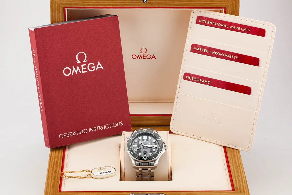 Up for sale is a brand new Omega Seamaster 300 Green Wave Dial on Bracelet, reference # 210.30.42.20.10.001. It comes complete with all boxes, papers, booklets, hang tag and Omega Warranty Card dated April 2025.