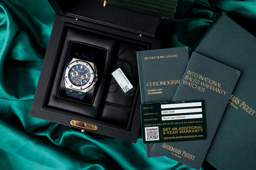 ![Thumbnail [WTS] 2019 Audemars Piguet Royal Oak Offshore Chronograph Titanium Blue Dial – Complete Set – Reference 26480TI.OO.A027CA.01 6](https://cdn-cf.watchpatrol.net/120x120/img/full/c3f35a690d9868d54e65dfbff86264c7b86c5065.jpg)