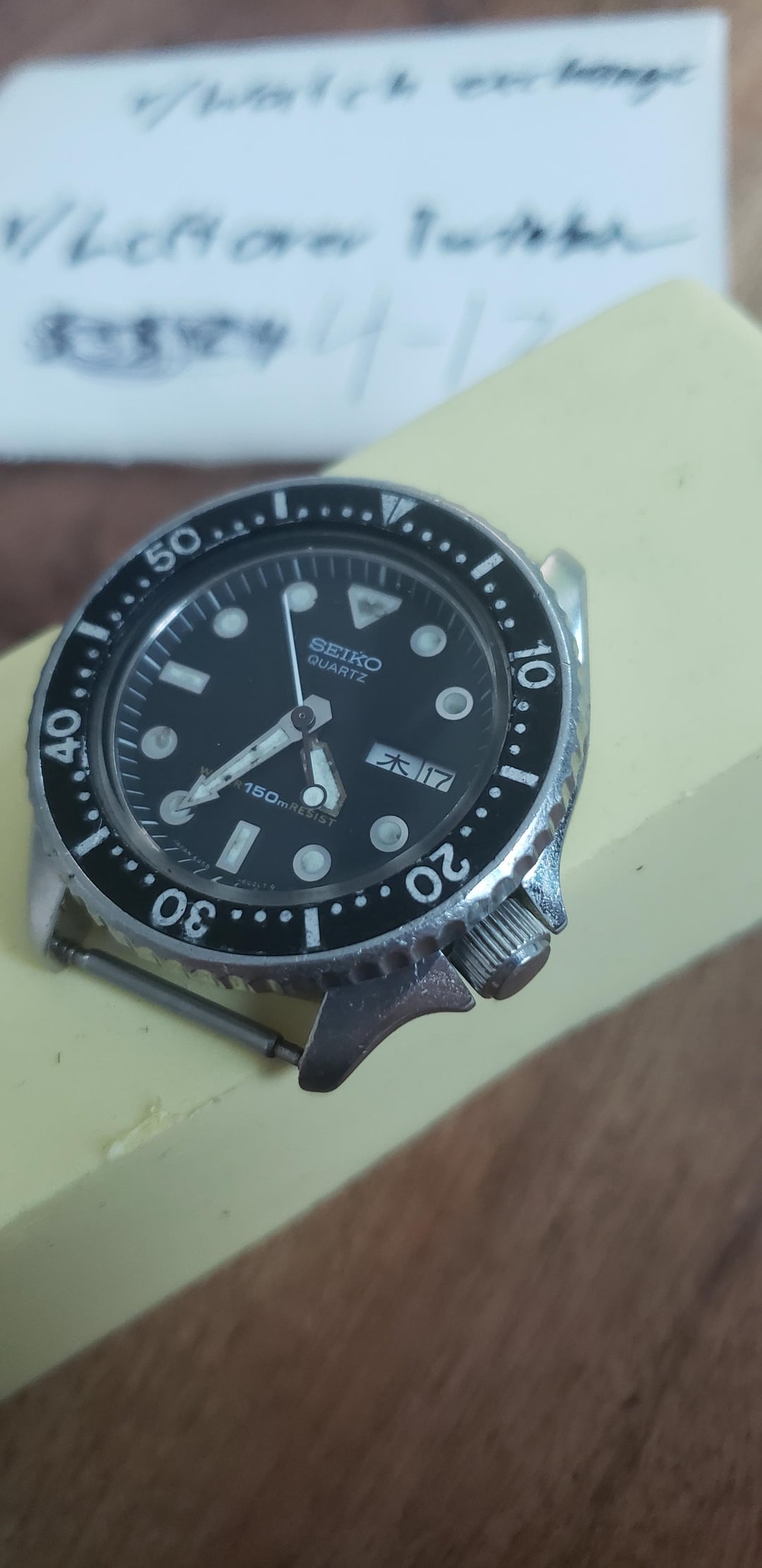 Hiya what you see what you get, if the post is up then it is for sale. ***please comment, so I can go in order regarding who came first*** ***please ask for new time stamps*** ***me, as a seller would never deny a new time stamp*** Hey my fellow watch enthusiasts I got a Seiko 6458 6000 for sale. Closest to a quartz skx013 Check out the stats: - OEM case - OEM case back - OEM hardlex crystal very tiny scratches but does have curve dent - aftermarket bezel insert - aftermarket bezel - aftermarket rubber strap - OEM dial - OEM handset - OEM movement - OEM anti magnetic cover - fresh battery *bezel does rotate, but no click noise* *not sure where the bezel came from but has a thick coin edge look* *your watch collection could use a new friend* *a daily for the daily* - open to deals - paypal conus - free shipping (international buyers pay for shipping) - happy to answer any questions Thank ya for looking at my post - kev