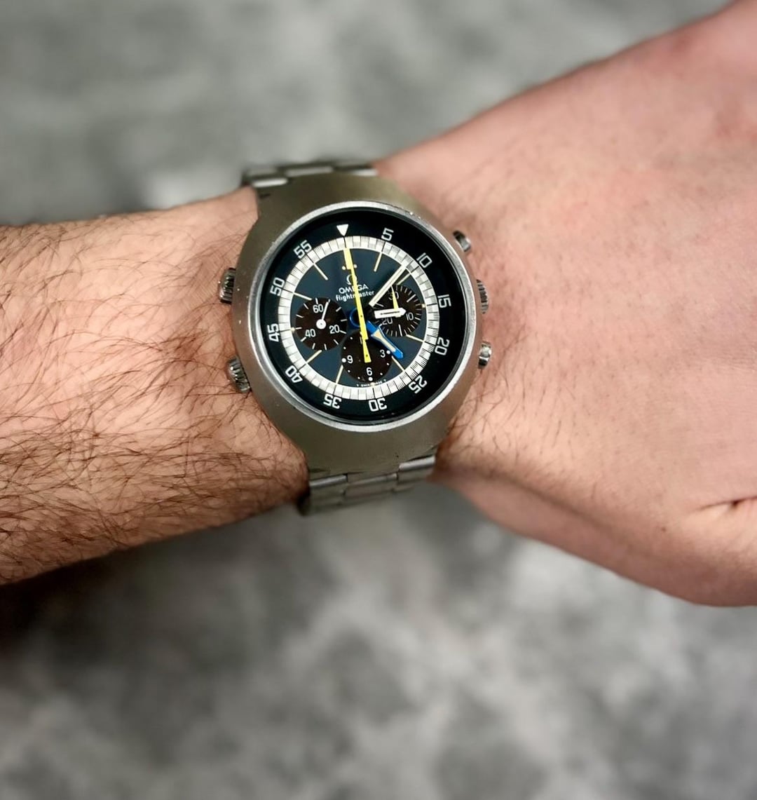 Up for sale is a beautiful 0mega flight master GMT Third Generation. It comes as watch only. The watch is in very good pre-owned condition with some normal minimal wear on the case and bracelet. Please refer to the pictures. The movement has been serviced last year and the invoice will be included in the package. This is a stunning 1973 vintage piece from 0mega. Similar to the speedy, the Flight master has a spacefaring connection. In much the same way the speed master was favored by NASA, the Flight master was favored by ROSCOSMOS, the Soviet space agency. The dial with the colorful hands matches very well with the black dial and the checkered outer dial. Timestamp: [Here](https://imgur.com/a/qN3vgMT) Ref: 145.0036 Size: 43 Movement: Manual 911 Accessories: N/A **PRICE: $2800 + shipping** IG: [old_country_timepieces](https://www.instagram.com/old_country_timepieces?igsh=amxmZzNoZnQ3bTh5&utm_source=qr) FB: Old Country Timepieces Method of payment accepted: Zelle/Wire I’m located in Cleveland, OH. Local face to face deals are possible. I ship fully insured nationwide. International shipping is possible upon agreement on extra fees. Please check out my other watches for sale on my profile. Plenty of references. Don’t see what you’re looking for? Please message me as sourcing might be possible. Thank you!