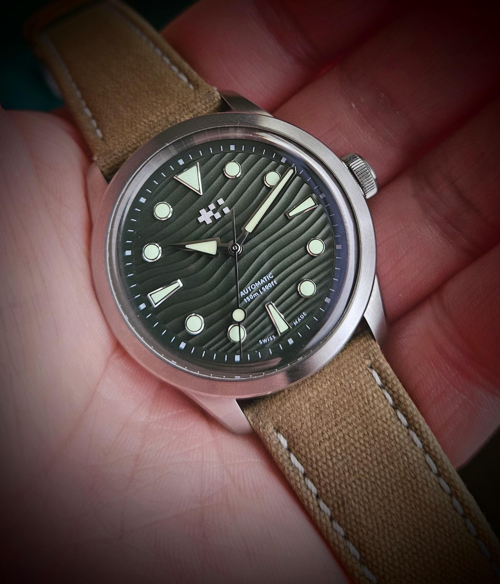 Hey Folks, Up for sale is Christopher Ward’s updated Dune, in the muted green “Marram” colorway. As seen in the photos, it’s in solid condition, with some faint strap change marks. Package includes boxes, manual, CW canvas strap and warranty card (February 2025). Asking for $745 (via Zelle), which includes insured shipping in CONUS only. Open to trade up or down for anything that catches my eye. Have a good one! * Album: [https://imgur.com/a/christopher-ward-dune-vXoYV5T](https://imgur.com/a/christopher-ward-dune-vXoYV5T) * Timestamp: [https://imgur.com/Yw5okKF](https://imgur.com/Yw5okKF) Specs: * 38mm dial, 44mm lug-to-lug, 20mm lug width * Sellita SW-200 movement * 150 meters water resistance * Screw-down crown