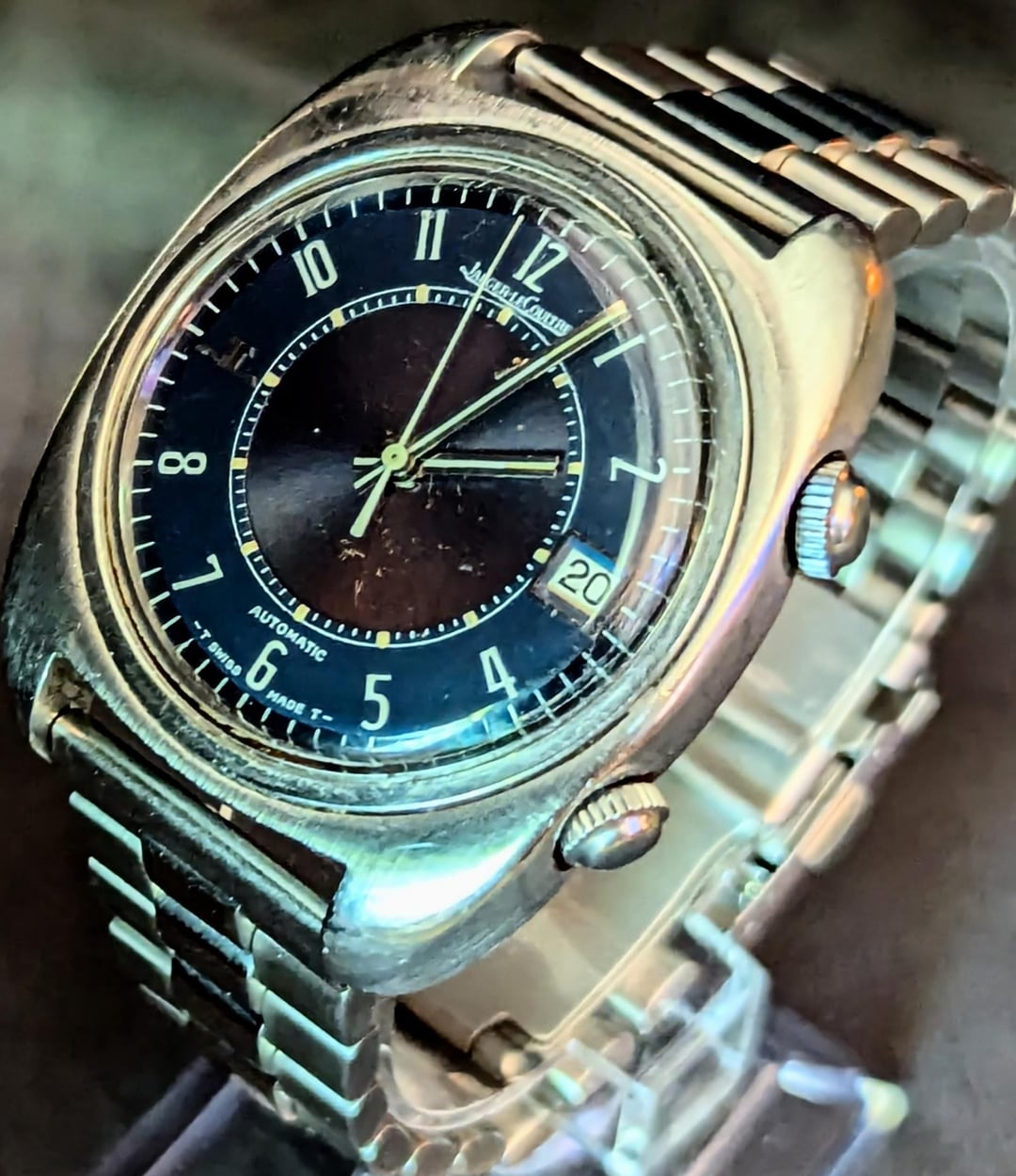 Jaeger-LeCoultre Memovox Alarm E876 Blue Dial 39mm Vintage Long time sub lurker. I've been selling vintage watches on eBay for years, but I've recently decided to try a watch exchange to sell some collector pieces. This JLC is an actual Estate sale find. Bought from the original owner. This Jaeger-LeCoultre 876 model has a stainless steel case housing and Calibre 916 automatic movement. Blue and Dark Blue Dial. The manually wound alarm is set via the crown at 2 o’clock and works. This piece is running well, the date flips correctly and the alarm sings. It's running great, alarm works and is awesome. Portland, OR Diameter: 39mm Model: E876 Memovox Alarm Movement: calibre 916 Automatic Date: 70s Price: $2999 (Wise, Zelle, or Paypal- buyer pays fees)