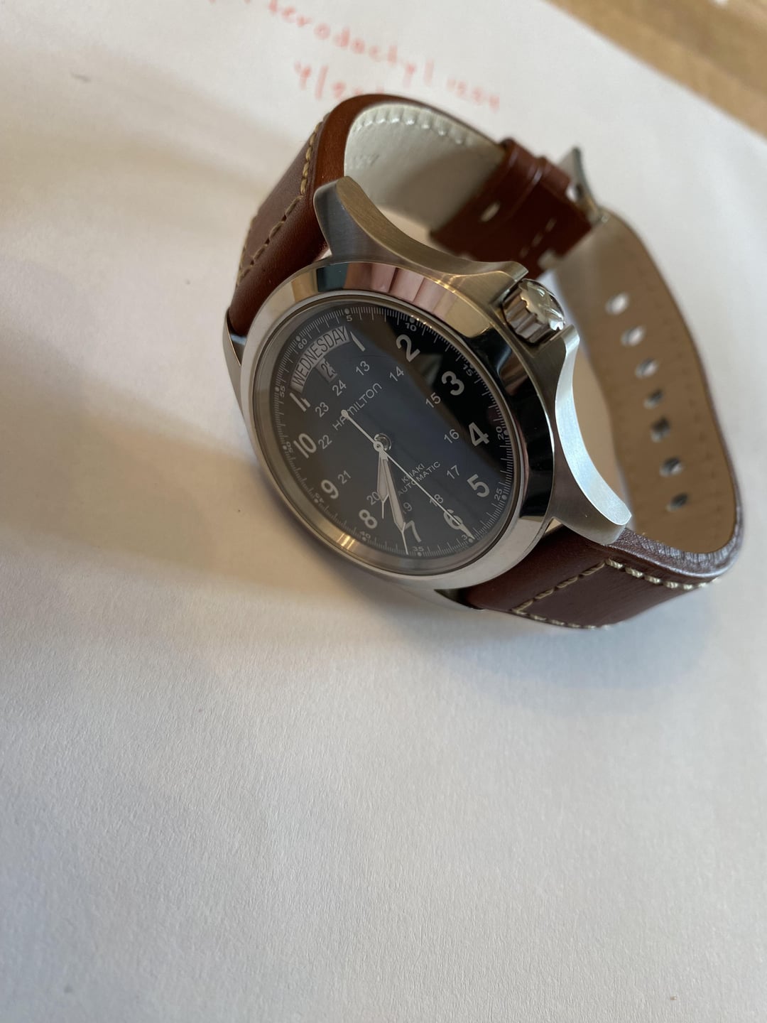 Hamilton Khaki King Up for sale is my Hamilton Khaki King. I have original box and strap. Bought from Jomashop around 2020. Light scratches on case. A couple deeper scratches on back of lugs from changing straps. Otherwise it is in good condition. Asking for $300 including shipping to CONUS. Venmo.