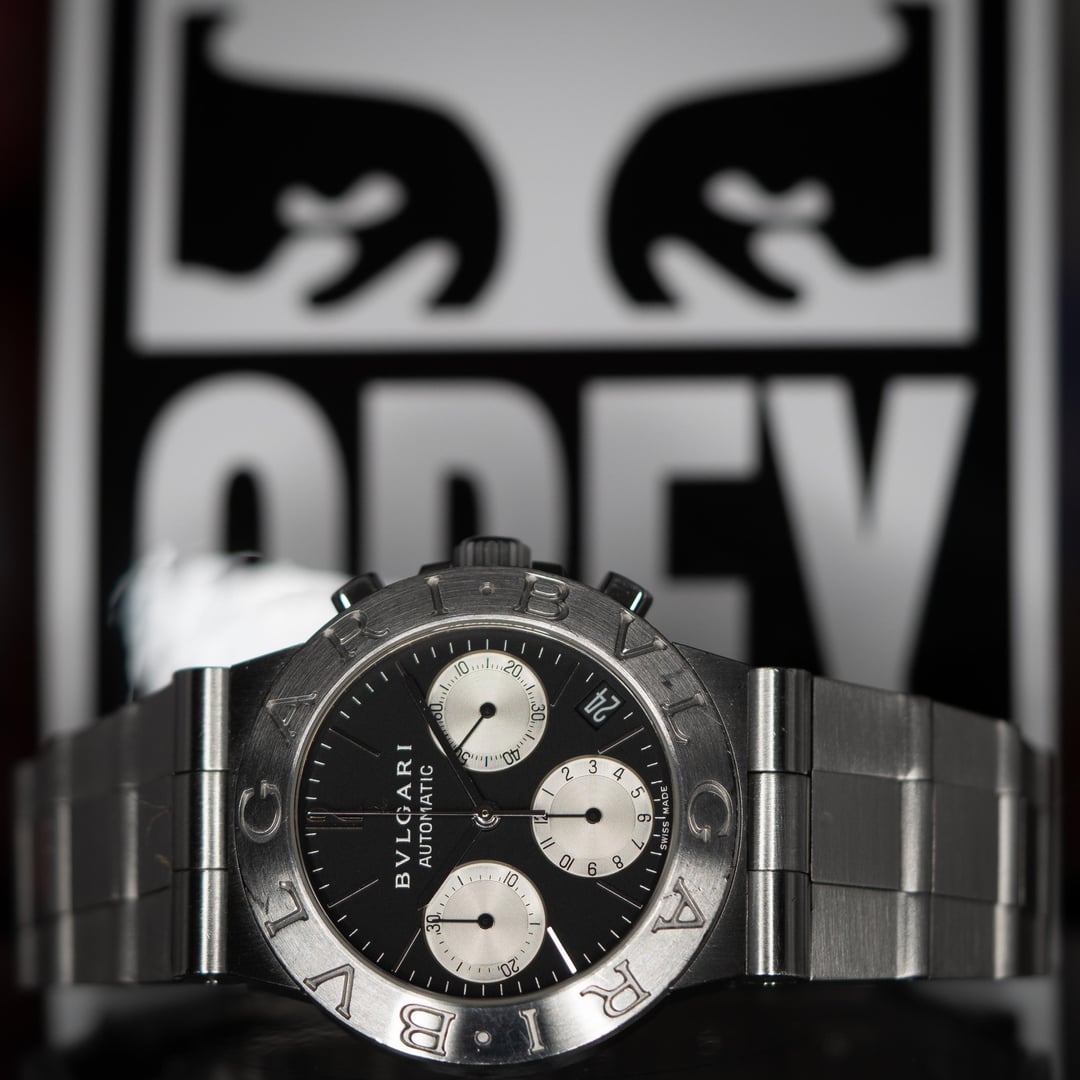 🏒🥅🚨 BVLGARI Diagono Sport CH35S Chronograph Stainless Steel 35mm Reference: CH35S This timepiece is in good pre-owned condition with signs of wear. The watch functions flawlessly and keeps accurate time. Chronograph functions reset properly. Comes with the original box and papers. This BVLGARI Diagono Sport Chronograph (Model: CH35S), a perfect blend of Italian luxury and Swiss precision. This timepiece is a testament to Bvlgari's bold design language and commitment to craftsmanship. 💰 Price: 💲**1,391 USD** Includes FedEx 2-Day U.S. shipping, additional tax to be collected for WI residents 🏦 Payment: Wire/Zelle payments preferred. 🪪 Timestamp: u/HabsFan161616 Please excuse any lint or dust in these photos. I shoot with a macro lens and lighting that will highlight flaws. About Me: I am a hockey coach and avid timepiece collector. I've been buying, enjoying, and selling timepieces for years. As a father of hockey playing daughters and a horology enthusiast, I try to incorporate my passion for Pucks & Timepieces into every photoshoot. My passion for hockey & watches is shared by the girls, and we often work together for the photography you see here. There tends to be an appreciation for art (specifically Brian Donnelly (Kaws), Shepard Fairey (OBEY), Death NYC, Banksy) present in our watch photography as well, but you'll obviously find Pucks & Timepieces everywhere. In terms of purchasing a timepiece from me, I facilitate the smoothest of transactions. Please reach out with questions about any of the items listed. I aim to be exceptionally responsive and am always happy to help. I'll gladly hop on a call to show any timepiece for interested buyers, and also offer a 24hr return policy - if you receive the timepiece and it just doesn't feel right, for whatever reason, simply return the timepiece for a refund. Please reach-out with any questions. Trades are welcome. Follow me on Instagram at [**https://www.instagram.com/pucks\_timepieces/**](https://www.instagram.com/pucks_timepieces/) \- Jeremy & the Hockey Girls