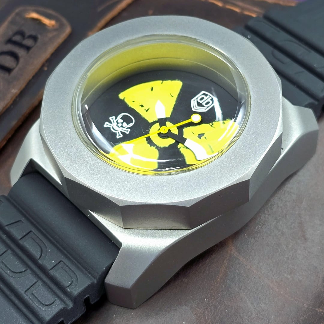 For sale here is a unique piece from the independent watchmaker Vintage VDB. I almost don’t even want to write anything up about this one- just look at it: absolutely incredible! Either you really, really like it, or you really, really don’t. Thick and chunky, this is the most comfortable watch of this size that I’ve ever worn, due to the type of rubber strap, and the width of that rubber. The size of the strap allows the watch to be very stable on your wrist, so that it does not feel too top heavy despite its 32.5mm thickness (crystal to caseback). This timepiece is in like new condition with no marks on the finish, and comes as full set as shown. Asking price is $2,957 **All watches sold by us come with a 1 year warranty on movement, case, and bracelet functionality.** We have been trading luxury timepieces since 2017 and operate out of the southeast United States. Accepted forms of payment are wire transfer, trades for other watches, or crypto +2%. Turn your digital coins and memes to IRL assets! After payment has been received, we ship out promptly using Fedex Priority Overnight, fully covered by a private insurance company. Packages are sent to a Fedex Office or Ship Center to be held for pickup. Armored carrier or personal delivery will be arranged for pieces valued over $150k. More pictures or video available on request! Plenty of references available, so deal with confidence! We pride ourselves on customer service, communication, and will do what you need to make this a comfortable transaction. Most brands and models of luxury timepiece are accepted on trade. Rolex, Audemars Piguet, Patek Phillipe, Richard Mille, Hublot, Panerai, Zenith, Breitling, Vacheron Contantin, F/P. Journe, A. Lange & Sohne, etc. I can do cash either way or multi-watch trades for the right deal! Check out our other listings on mechanical-art . com