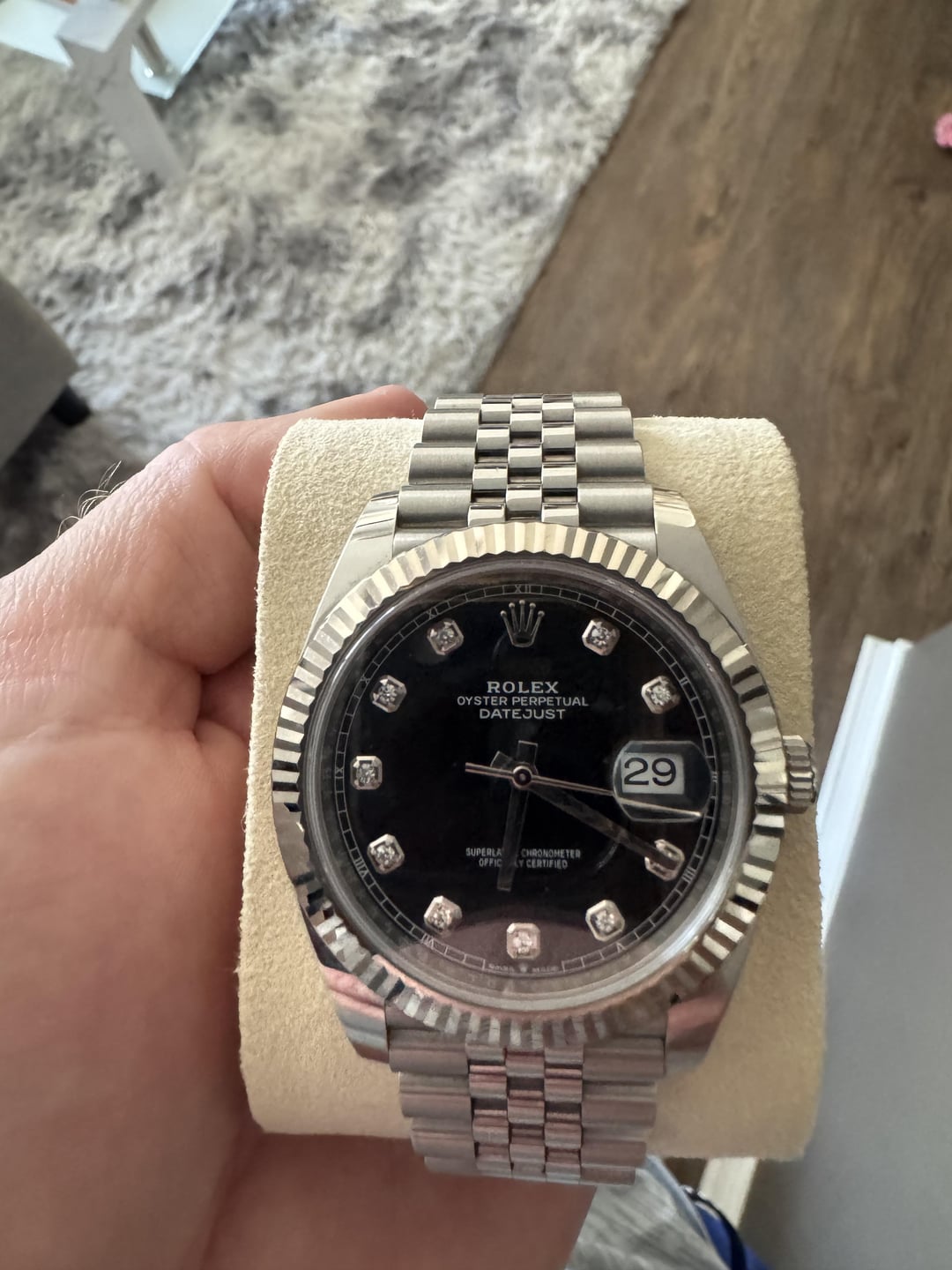 español![[WTS] Rolex Datejust 41 Bright Black w Diamonds 1](https://cdn-cf.watchpatrol.net/600x600/img/full/93e44defa1cee409499d3a17a0e22977ea44e86c.jpg)
