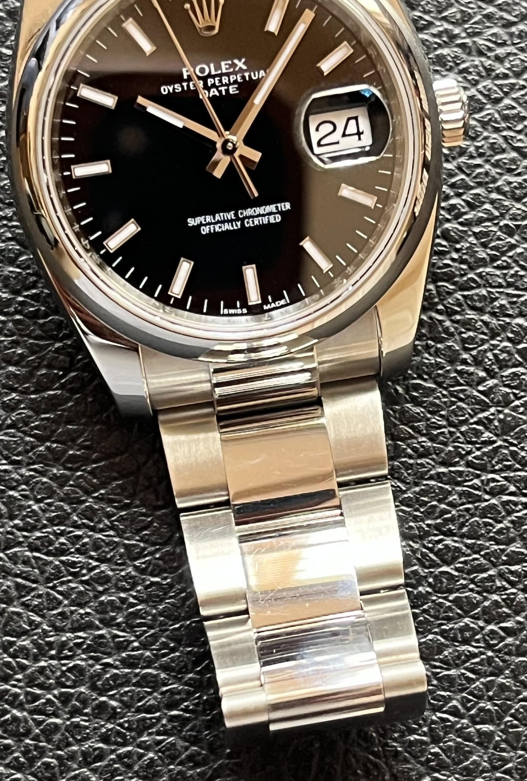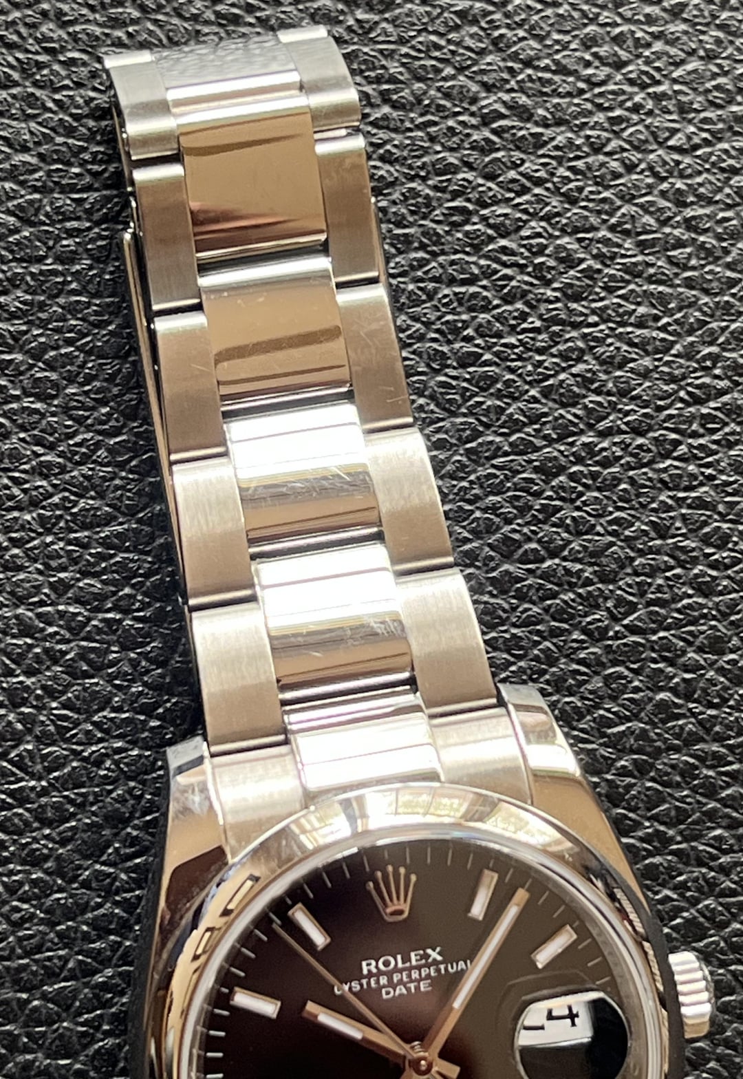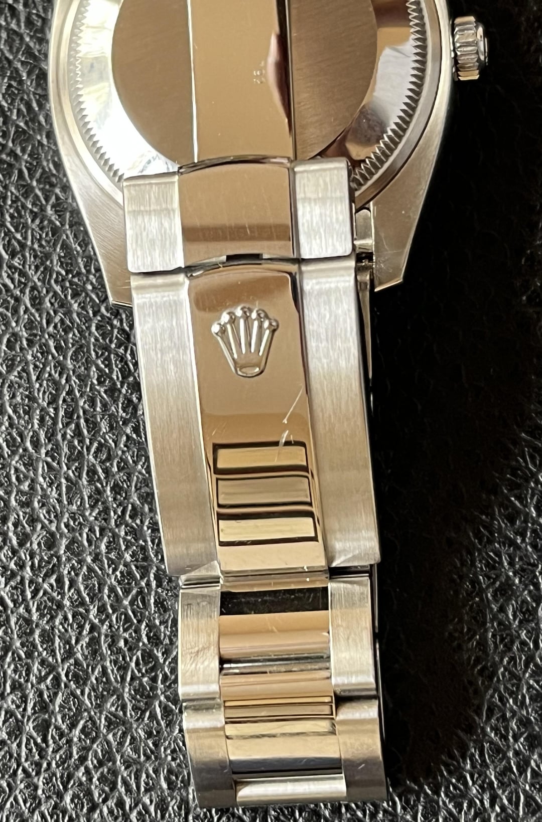Asking $4750 (CONUS shipping on me, fees if any on you) * Watch is in great condition and keeps excellent time for me. * Tim Mosso video review: [https://www.youtube.com/watch?v=WuWzS1dSUz4](https://www.youtube.com/watch?v=WuWzS1dSUz4) * Everest Bands review: [https://www.everestbands.com/blogs/bezel-barrel/there-s-the-day-date-the-datejust-and-one-that-s-just-the-date](https://www.everestbands.com/blogs/bezel-barrel/there-s-the-day-date-the-datejust-and-one-that-s-just-the-date) * Case: 34mm Diameter x 42mm lug to lug x 11.5mm thin x 19mm lug width (43.7 lug to lug with the solid end links included) * Water resistance: 100m * Movement: Rolex 3135 (same movement as Datejust or Submariner Date of the era) * Crystal: Sapphire * Other: This is the latest generation of the Rolex Date (Ref. 115200), using the same movement as the Datejust or Submariner Date of the era, and is now discontinued. I believe this is because the current generation 34mm OP uses the ladies movement, making a date version impractical. This generation had broader lugs, giving it a bit of a cushion shape, and wears larger than the previous generation 34mm AirKing / Date case. It includes 3 micro-adjust positions and also the Rolex EZ-Link expansion system integrated in the clasp (video link shows how this works) * Includes: * \--- Watch on bracelet (plus one removed link) * \--- Rolex card wallet and service booklet (Please note, warranty card is NOT present) * \--- Inner green box, outer cream cardboard box, sleeve I’m a private collector slimming my collection down, and have 100+ transactions on WatchExchange – and I’m happy to talk to you on the phone or FaceTime once you are sure you’d like to proceed. Straight sale strongly preferred, and priced to reflect this. Thank you for reading my post, and thanks also to the Mod community on WatchExchange.