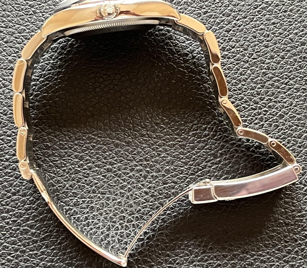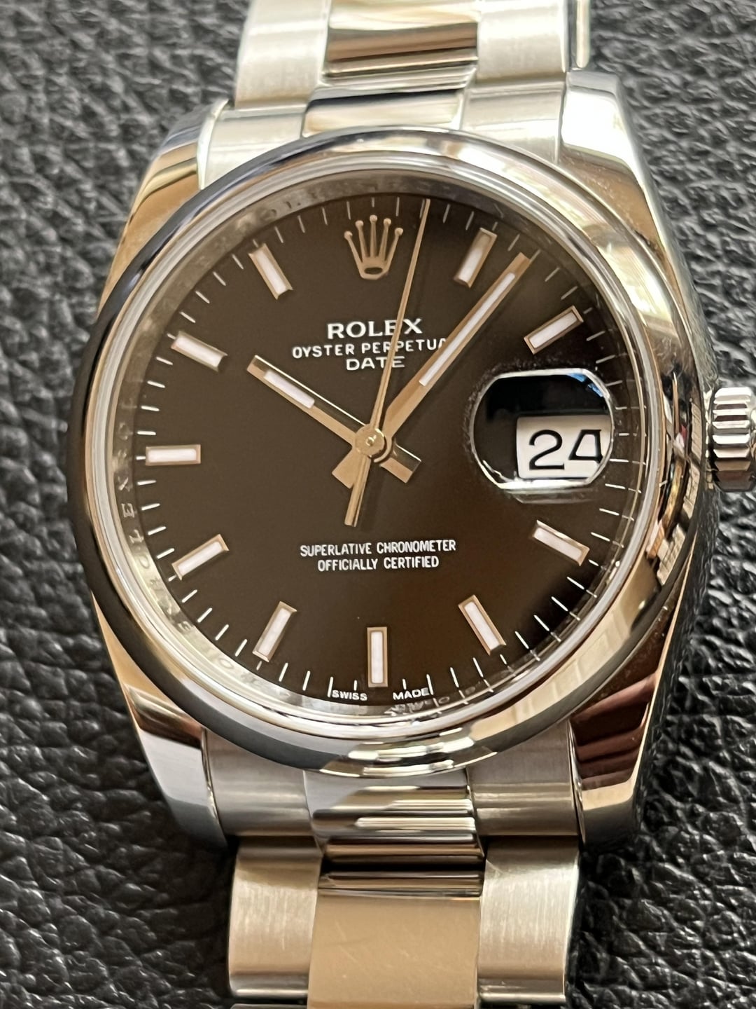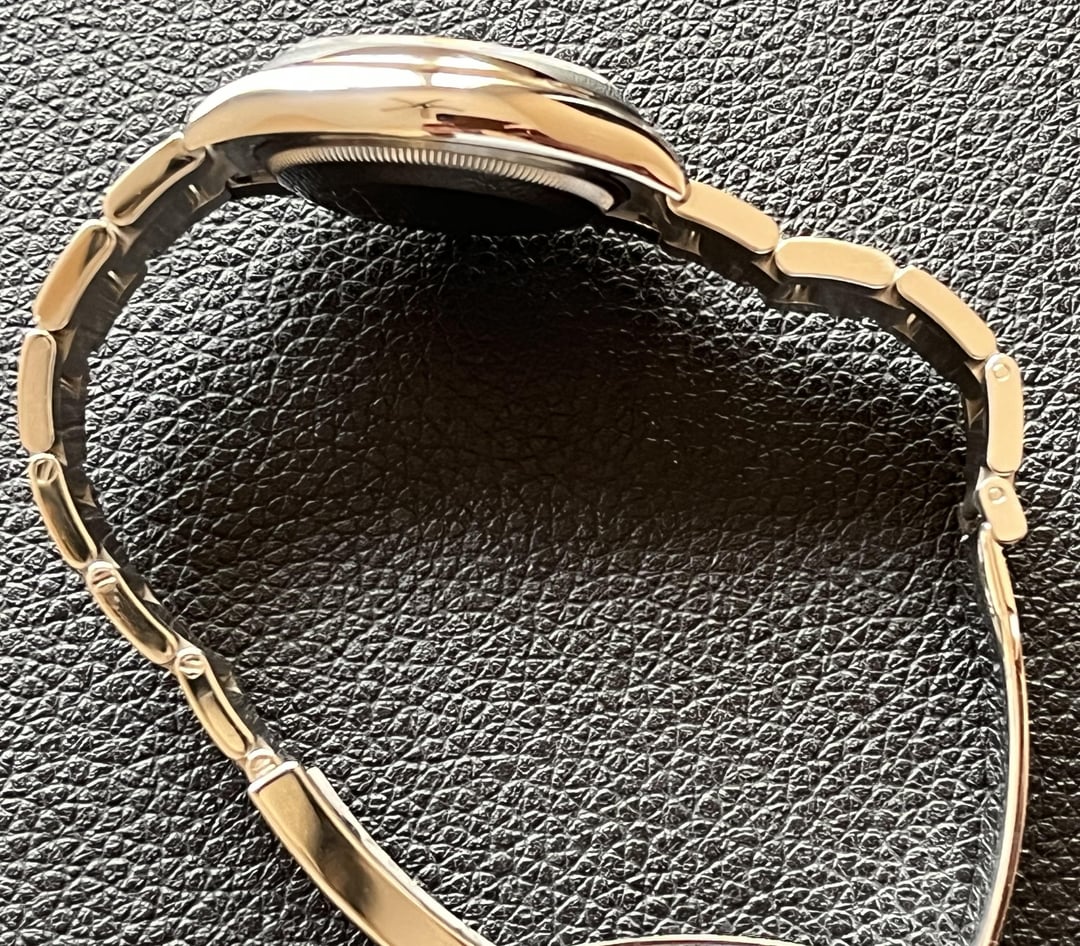 Asking $4750 (CONUS shipping on me, fees if any on you) * Watch is in great condition and keeps excellent time for me. * Tim Mosso video review: [https://www.youtube.com/watch?v=WuWzS1dSUz4](https://www.youtube.com/watch?v=WuWzS1dSUz4) * Everest Bands review: [https://www.everestbands.com/blogs/bezel-barrel/there-s-the-day-date-the-datejust-and-one-that-s-just-the-date](https://www.everestbands.com/blogs/bezel-barrel/there-s-the-day-date-the-datejust-and-one-that-s-just-the-date) * Case: 34mm Diameter x 42mm lug to lug x 11.5mm thin x 19mm lug width (43.7 lug to lug with the solid end links included) * Water resistance: 100m * Movement: Rolex 3135 (same movement as Datejust or Submariner Date of the era) * Crystal: Sapphire * Other: This is the latest generation of the Rolex Date (Ref. 115200), using the same movement as the Datejust or Submariner Date of the era, and is now discontinued. I believe this is because the current generation 34mm OP uses the ladies movement, making a date version impractical. This generation had broader lugs, giving it a bit of a cushion shape, and wears larger than the previous generation 34mm AirKing / Date case. It includes 3 micro-adjust positions and also the Rolex EZ-Link expansion system integrated in the clasp (video link shows how this works) * Includes: * \--- Watch on bracelet (plus one removed link) * \--- Rolex card wallet and service booklet (Please note, warranty card is NOT present) * \--- Inner green box, outer cream cardboard box, sleeve I’m a private collector slimming my collection down, and have 100+ transactions on WatchExchange – and I’m happy to talk to you on the phone or FaceTime once you are sure you’d like to proceed. Straight sale strongly preferred, and priced to reflect this. Thank you for reading my post, and thanks also to the Mod community on WatchExchange.