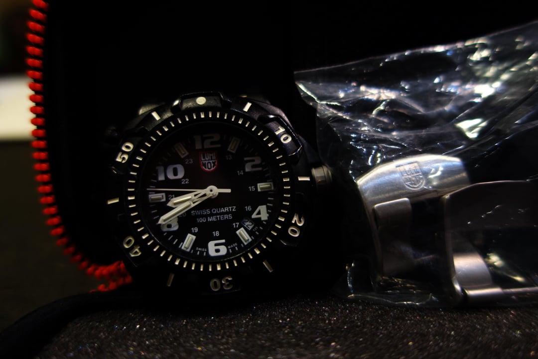 Selling my Luminox Sentry (Model XL.0201.SL) another larger diver that i'm just not wearing enough. It comes with two genuine buckles; unfortunately the OEM rubber straps break down over time and literally fall apart. Can't say the same for the watch head, though. It's tough, it's light, and I've loved it. The lume is exactly what you want--bright and steady all night long. Bezel action is a bit stiff but secure and reassuring. * **Case Material**: Carbon Reinforced Polycarbonate * **Crystal Material**: Tempered scratch resistant mineral crystal * **Case Diameter**: 43.0 mm * **Case Thickness**: 14.0 mm * **Bezel Function**: Unidirectional Rotating * **Water Resistance**:100m / 330ft Happy to send additional pictures if you're interested. Definitely some light wear on it, but it was definitely not abused. Asking $160, shipping included.