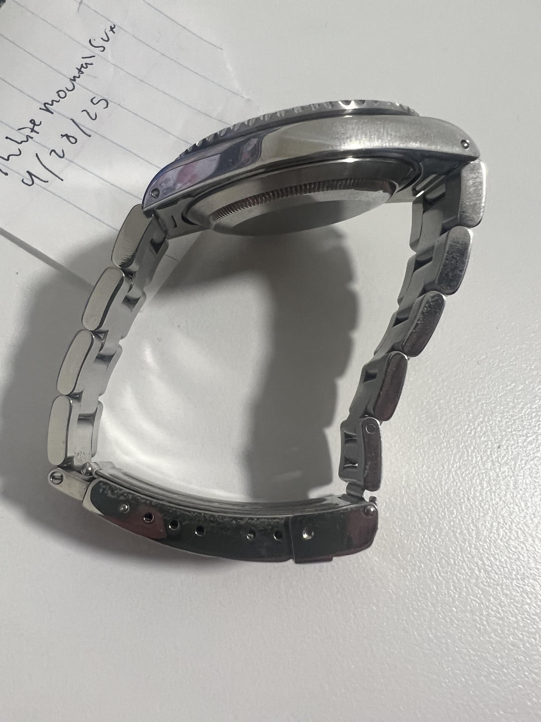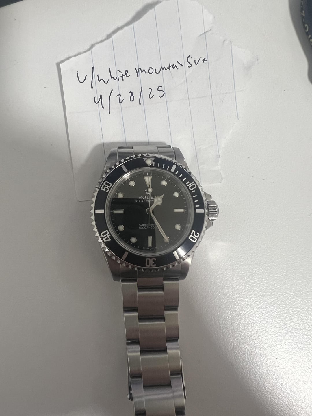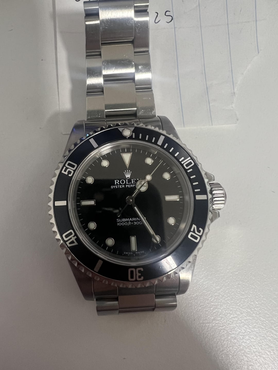Hello all! Today I have a Rolex submariner ref 14060m with a P serial dating it to 2000. The watch comes with the box, hang tag, extra links, and original booklet. The watch is keeping time exceptionally well and is in overall great shape with the exception of a small ding on the 30 sector of the bezel as pictured in the photos. The bracelet has little to no stretch and the crown on the bracelet is highly contrasted suggesting little to no polishing over its lifetime. I am interested in trades specifically looking at solid gold watches, other rolex, modern rolex, Reverso, etc. Asking price for cash - $7,650 shipped Asking price for trade - $8,000 I accept zelle, wire, venmo, paypal F&F, located in the PNW.