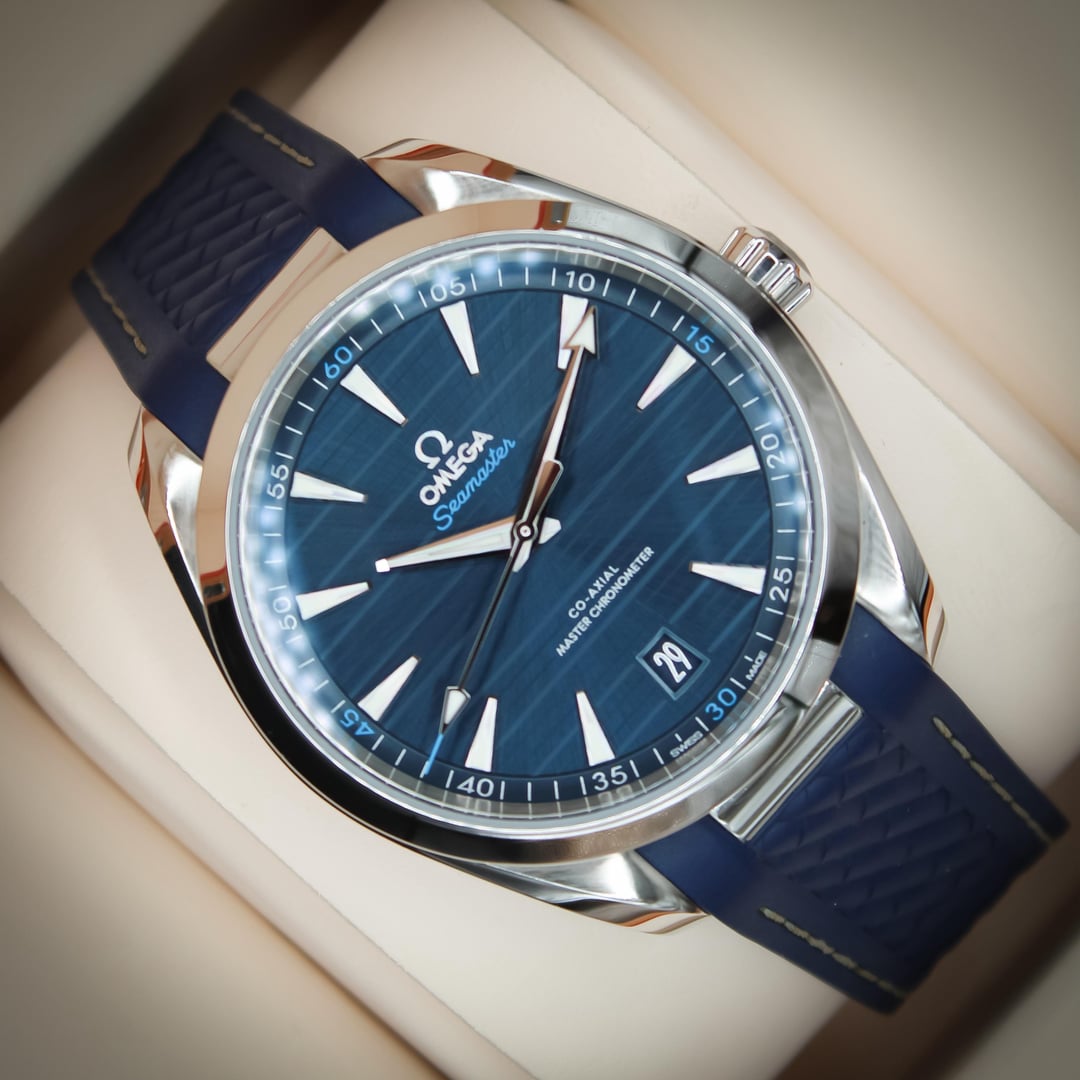 OMEGA Seamaster Aqua Terra - Box and Papers Ref. No. 220.12.41.21.03.001 Price: $3,795 + label Photos: https://imgur.com/gallery/8SXpsYw Condition: https://imgur.com/gallery/XGU4Q0W Timestamp: https://imgur.com/gallery/YXNlJpE Specifications: - 41mm steel case - Blue rubber strap - Blue Dial - OMG 8900 movement with 60 hour power reserve - Sapphire crystal - Factory warranty for another year and five months Included: - Watch, inner and outer boxes, pouch, manual, and all three cards (dated 9/18/2021) Condition: - This watch is in very good used condition. The crystal appears to be free of any imperfections. The case and bezel are in great shape with a few very light marks/hairlines. The rubber strap has tons of life left. The watch functions as it should. The photos depict an accurate condition of the watch. The flap on the outer white box is beginning to tear. I accept payment via Wire Transfer or Zelle. Fully insured shipping will be provided at cost of buyer. Buyer-paid authentication & escrow services available upon request. Located in NJ, USA. References available. Feel free to reach out with any questions. I can be contacted through private message on Reddit, through email at [email protected], or on Instagram @vktimepieces.