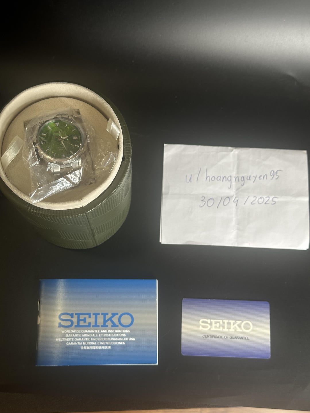 Up for sale is Seiko Prospex Alpinist Bamboo Grove Thailand Save the Forest Limited Edition SPB435J1 New Fullset Images: https://imgur.com/a/ZItaVko Timestamp: https://imgur.com/a/2MMfvVb Video: https://imgur.com/a/qFoyPu5 The Seiko Prospex Alpinist Laurel 1959 Re-Creation Bamboo Grove Thailand Limited Save the Forest Edition is a stunning tribute to Seiko’s legendary Alpinist series, blending rugged adventure-ready specs with a design inspired by Thailand’s serene bamboo forests. This Thailand-exclusive limited edition is crafted with Seiko’s signature reliability, making it perfect for both outdoor exploration and everyday wear. The SPB435J1 features a 38mm stainless steel case with a super hard coating for durability, paired with a rich bamboo green dial that captures the essence of nature. The sapphire crystal with anti-reflective coating ensures clarity, while the screw-down crown and 200-meter water resistance make it a solid companion for any adventure. Inside, the watch is powered by Seiko’s 6R35 automatic movement, offering a 70-hour power reserve and an accuracy range of +25 to -15 seconds per day. The Lumibrite-coated hands and markers provide excellent readability in low light, and the three-fold clasp with push-button release adds convenience and security. This watch comes in a special edition vegan leather box, reflecting Seiko’s commitment to sustainability. Box, papers, warranty card and hang tag are included Price: $999 + $35 flat shipping rate (DHL/FedEx). Payment via PayPal F&F or G&S (buyer covers +4.6% fee). No trades please. Feel free to message me with any questions or if you're interested. Have a great day! Check out my other watches on Instagram: @jasonswatchcorner