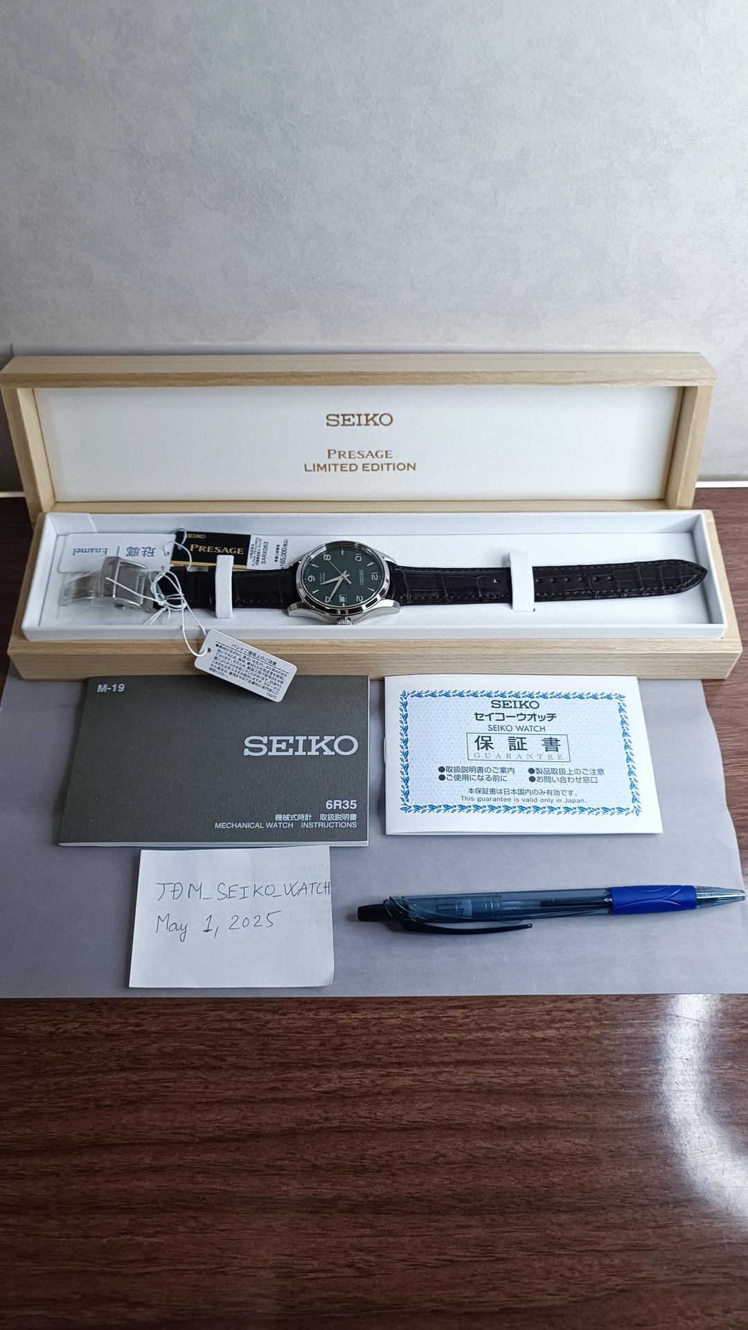 Hello r/WatchExchange, I’m selling a SEIKO PRESAGE SARX063, a Japan Domestic Market (JDM) limited edition model with a stunning forest green enamel dial. The watch is brand new and comes with original tag. Details: Movement: Automatic 6R35 (with hand-winding capability) Power Reserve: Approximately 70 hours Case Material: Stainless Steel Case Size: 40mm diameter, 12mm thickness, 47.5mm lug-to-lug Crystal: Sapphire with high-quality anti-reflective coating Strap: Includes 1 premium leather straps Water Resistance: 10 bar (100m) Accessories: As shown in the images Images: https://imgur.com/a/914Oi0e Timestamp: https://imgur.com/a/hjq83Id Price: $860 USD (shipping not included) Shipping & Payment: Shipping: Worldwide via FedEx (2-4business days, depending on location) Shipping Cost: $50-$80 USD depending on destination Payment: PayPal Friends & Family or Goods & Services (buyer covers the 4.6% PayPal fee) --- Thank you!