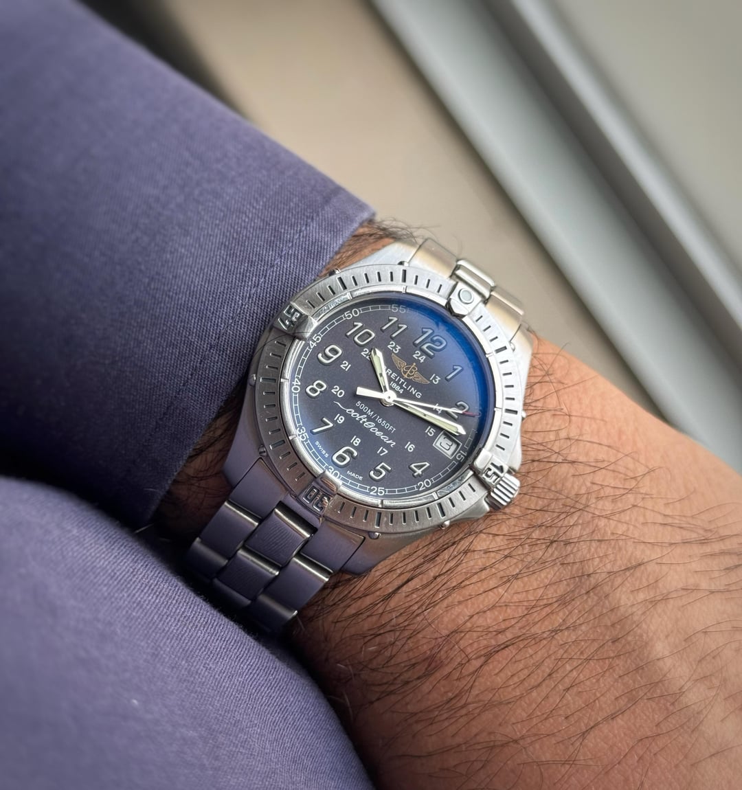 [WTS] Breitling Colt Ocean 500M - A64050 with Letter of Authenticity/Receipt/Box from Watcfinder&Co. Only for 1100$ Shipped 🚢 Via FedEx Up for sale is a breitling colt ocean reference A64050 featuring a stainless steel case with a case size of 38mm. Condition of the watch is good no major dents or dings just a few hairline scratches overall. Dial is clean with a beautiful bluish grey tone. Bezel is in good shape and rotates smoothly. Breitling signed clasp and crown. Sapphire crystal with AR coating which is in perfect condition. Comes on its original bracelet that would fit upto 7.4 inch wrist max. The set inlcudes a solid box, outer cover, authenticity papers & receipt all by Watchfinder& co. Quartz movement working perfectly fine with no malfunctions and keeping accurate time as it should. Asking 1100 $ shipped via Fedex Payment through Wise/Crypto/PayPal F&F only. Will be shipped by midweek