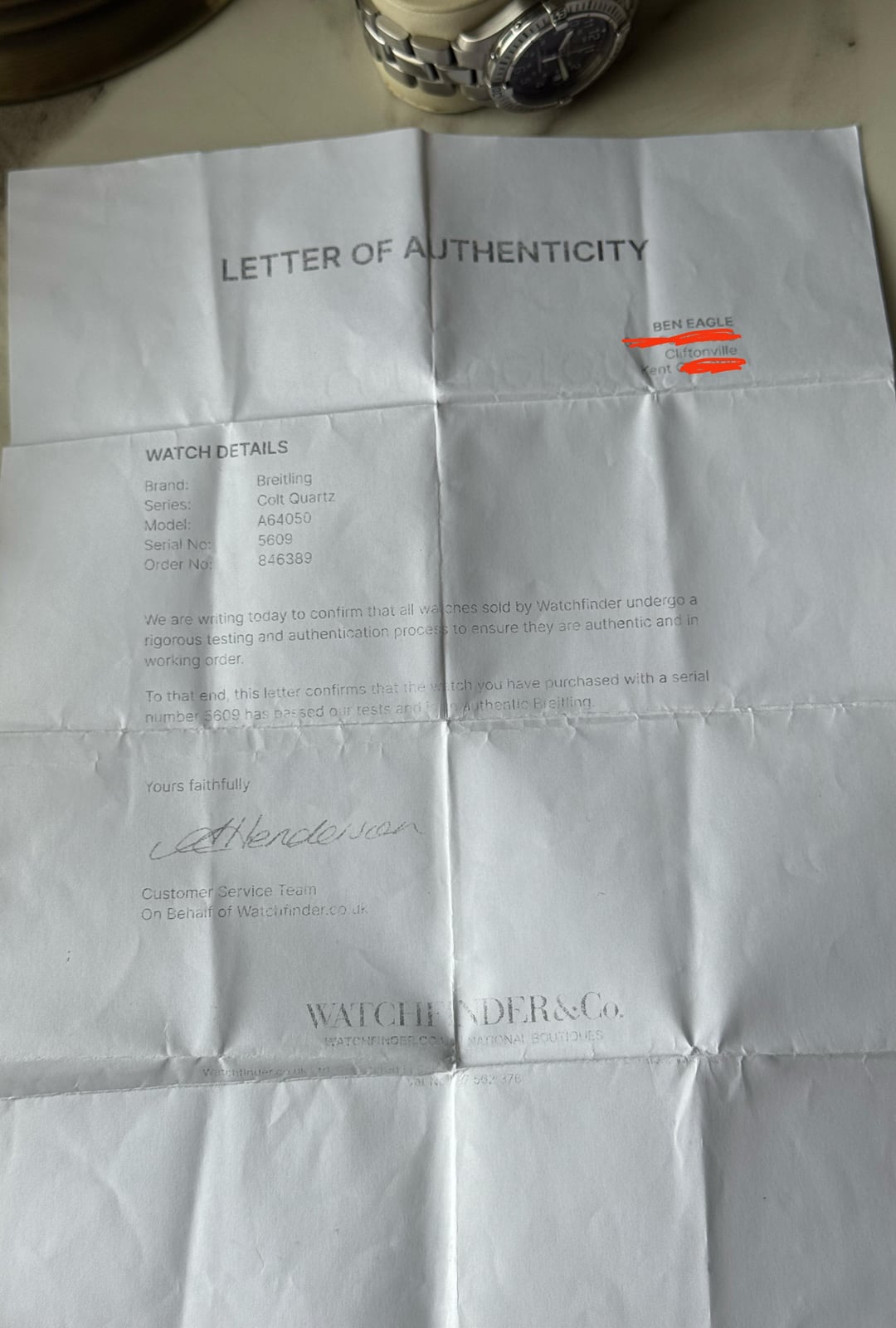 [WTS] Breitling Colt Ocean 500M - A64050 with Letter of Authenticity/Receipt/Box from Watcfinder&Co. Only for 1100$ Shipped 🚢 Via FedEx 12