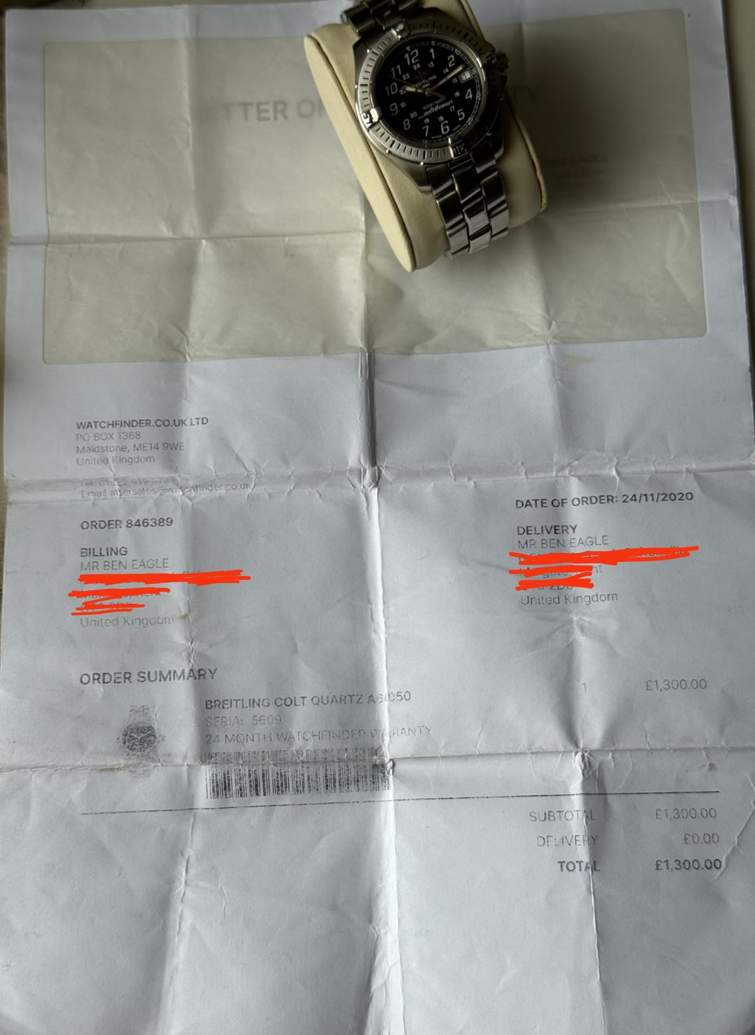 [WTS] Breitling Colt Ocean 500M - A64050 with Letter of Authenticity/Receipt/Box from Watcfinder&Co. Only for 1100$ Shipped 🚢 Via FedEx 11