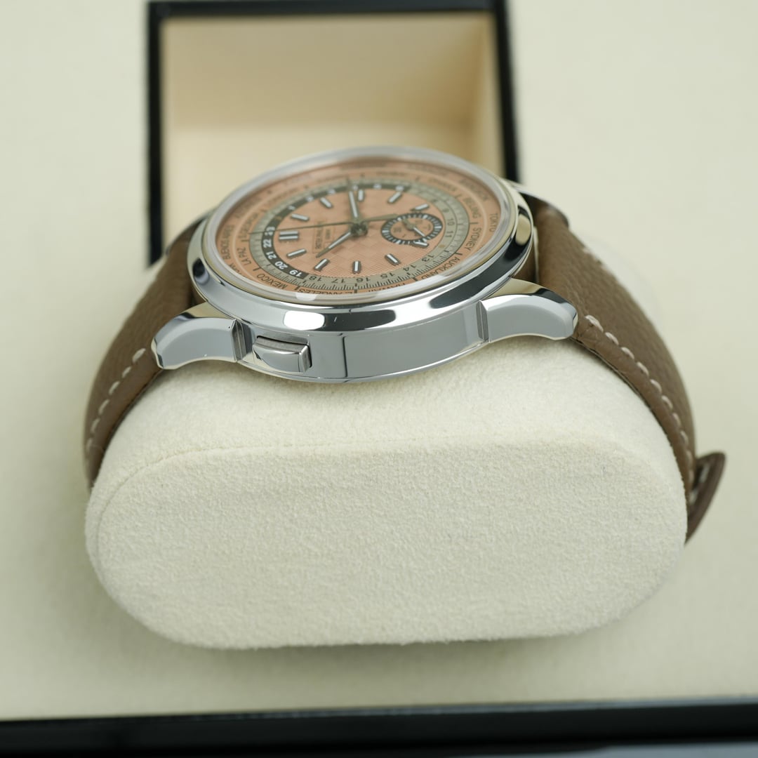 **2023 Patek Philippe Complications 5935A-001 World Time Flyback Chronograph Complete** Timestamp: [https://imgur.com/n6P60bJ](https://imgur.com/n6P60bJ) Discover the Patek Philippe Complications 5935A-001 World Time Flyback Chronograph — a rare stainless steel creation that blends modern elegance with horological mastery. This 41mm timepiece features a striking rose-gilt opaline dial with a carbon motif center, displaying 24 time zones with seamless clarity. Powered by the self-winding Caliber CH 28-520 HU, it boasts a 55-hour power reserve and a flyback chronograph for effortless timing. A sapphire crystal case back reveals the intricate movement, underscoring Patek Philippe’s unwavering commitment to craftsmanship. Watch comes a complete set with box and papers. Watch is overall in excellent condition. Please look at my pictures as I like to fully represent the exact condition of the watch through my photography. **Offered at $54,999 shipped in US or OBO.** Payments accepted: Wire or Direct Bank Transfer (Bank of America) Shipping is always FedEx/UPS overnight, fully insured in US. I am an avid enthusiast and collector and am not affiliated with any watch brand I post. Always open to trades. Please message with offers. I guarantee every watch I sell to be 100% authentic. Follow me on IG: JJ\_Timepiece\_Co
