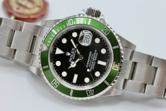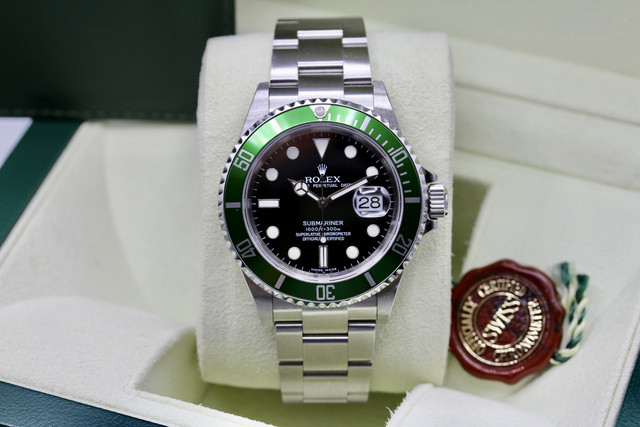 | 2008 Rolex Submariner Date 'Kermit' 16610LV, 40mm, Steel, Green 'Sharp 4' Bez... watch_chest (1692) |
