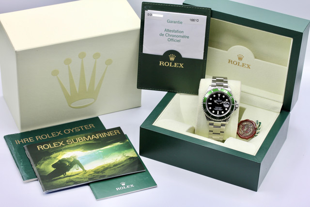 | Rolex Submariner Kermit 16610 LV Oyster Bracelet with Factory Green Bezel Watch diamonds-east-international (1345) |