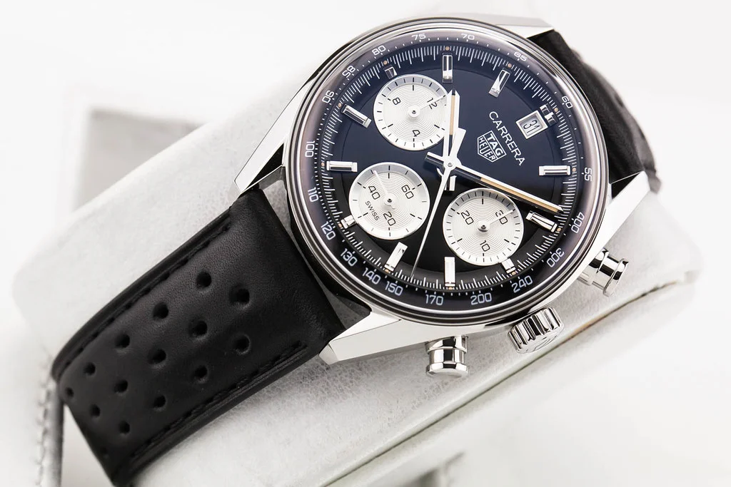 Up for sale is an unworn condition Tag Heuer Carrera Automatic Chronograph 39mm Black Panda Dial on Leather Strap, reference # CBS2210.FC6534. It comes complete with all boxes, papers, booklets and Tag Heuer Warranty Card dated February 2025.