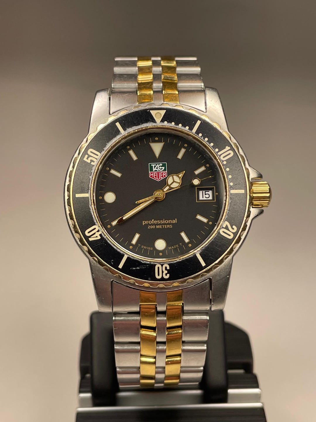 Hello All, # [Timestamp, Videos, and Photos CLICK HERE](https://imgur.com/a/tag-heuer-1500-tu-tone-wd1220-00-plSd72q) Up for sale is a very nice 1990's Tag Heuer 1500 Series Tu-Tone with black dial. Model WD1220-00. This is a 200m rated dive watch with sapphire crystal. This 37mm watch would make a great daily wearer. Very honest original condition. This watch just received a brand new ETA 922.412 movement which is the correct and direct replacement for the original. These are the higher end movements versus the cheaper \[plastic\] replacements common today. Many of the original movements are just too old and subject to failure. So the new owner will be all set for many years with new battery as well. My watchmaker swapped over the original date plate \[Tag Heuer 4/97\] on the movement to keep everything looking original. The unidirectional bezel is tight with great action. Crown screws down and unscrews without issue. Crown does have some wear on bottom side but that is purely aesthetic. These are getting hard and harder to find nice examples. Will fit up to about a 7.5 inch wrist. Price: $465.00 Shipped NET Over 40+ transactions here on WatchExchange! Please let me know any questions and thanks for looking!