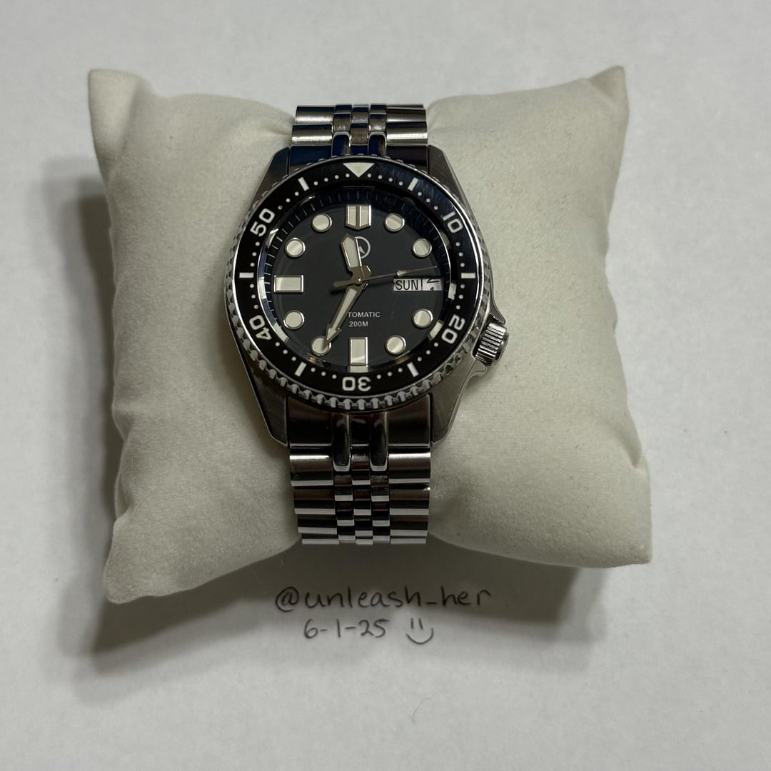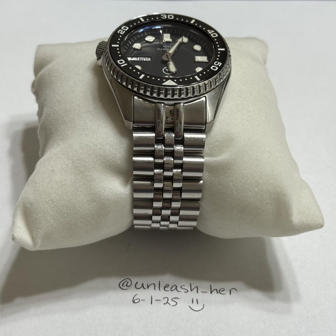 Nice little diver watch on a Miltat band. Comes with box, card, pillow, and 6 additional links. This is pre-owned so please expect some wear like scratches or dings. $135 shipped. Payments: PayPal Friends & Family, or Venmo. Please no notes, emojis are fine. Time proof photos are available at request!