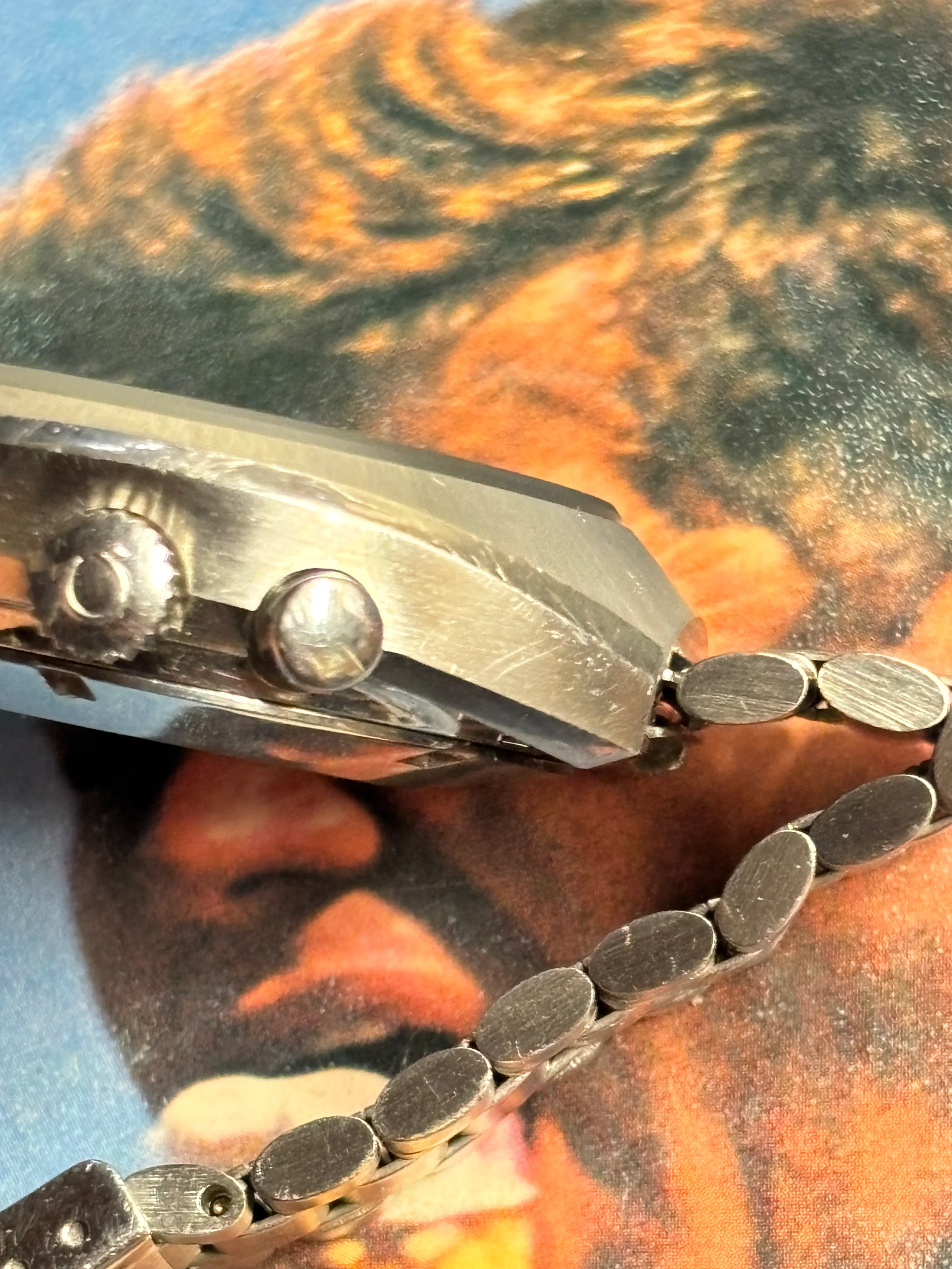 Watch appears to be in all original condition with no evidence of ever being polished or touched up. Case shows hairline scratches and original brushing. Note: due to camera magnification these scratches look worse than to the naked eye. Hands and dial are in great shape with clean and consistent lume. Bracelet has one gouge on the 12 o'clock side as shown in photos. The 861 is running strong on my timing machine, but service history is unknown. All chronograph functions operate and reset properly. Bracelet is sized to my 6.9" wrist, but will include an additional link.