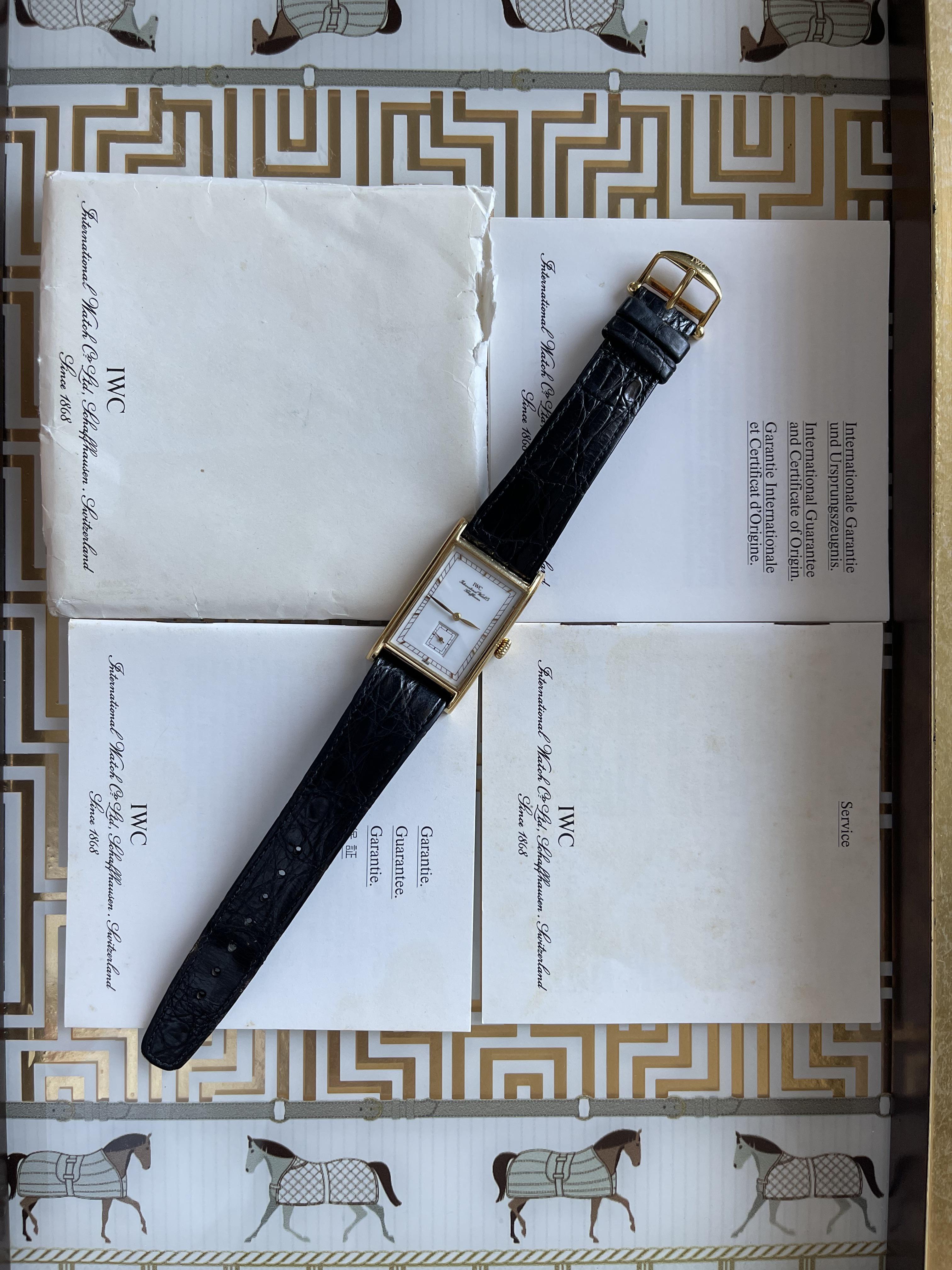 This **IWC Novecento Ref. 2550** is a true collector’s piece – an elegant time-only watch in a beautifully proportioned **18K yellow gold rectangular case**, designed and crafted in the 1990s. * **Reference:** 2550 * **Case:** 18K yellow gold, rectangular (tonneau) design – classic and sophisticated * **Dial:** Clean and balanced time-only display – perfectly legible * **Movement:** IWC manual-winding movement * **Condition:** Excellent – well preserved and carefully worn * **Buckle:** Original IWC **18K gold buckle** * **Strap:** Original black leather strap, near-new condition with minimal signs of wear * **Crystal:** Sapphire, scratch-free Rare reference, especially in such excellent condition. Price: 4670 $ Shipping: Worldwide Payment: Wire or PayPal Gallery: [https://imgur.com/a/KPSDyoC](https://imgur.com/a/KPSDyoC) Stamp: [https://imgur.com/a/hd2YLBH](https://imgur.com/a/hd2YLBH) Instagram: LeWatch\_