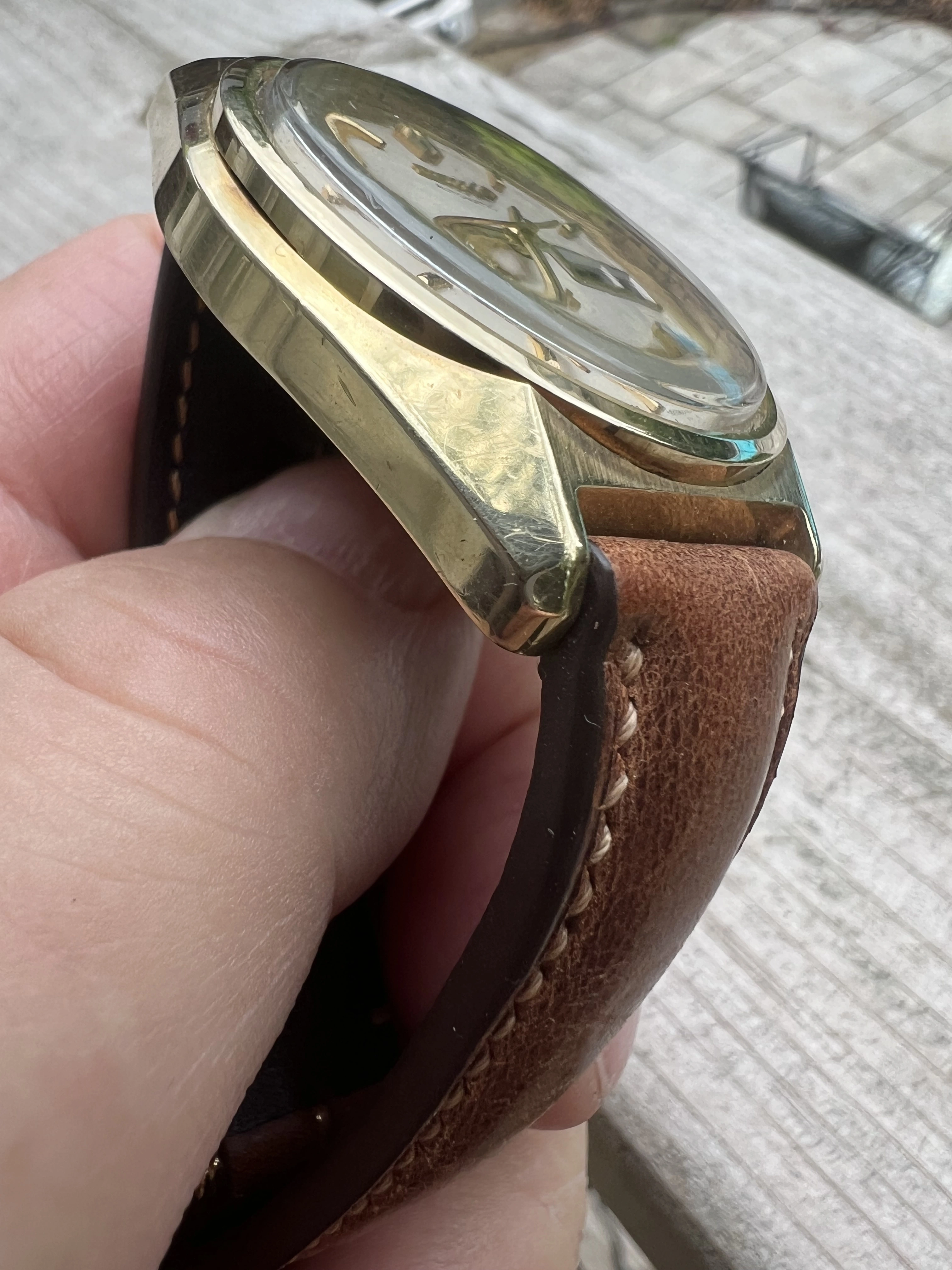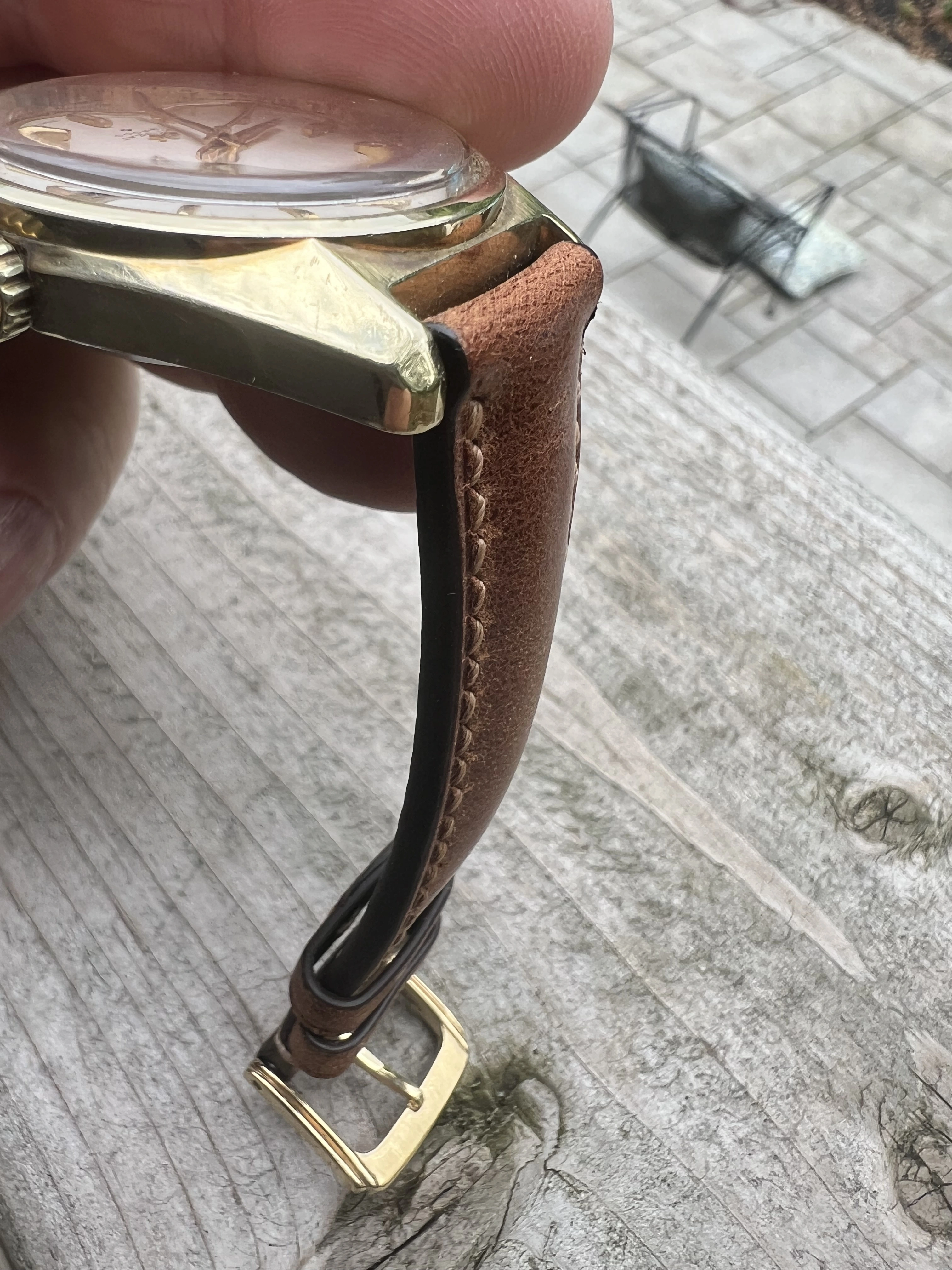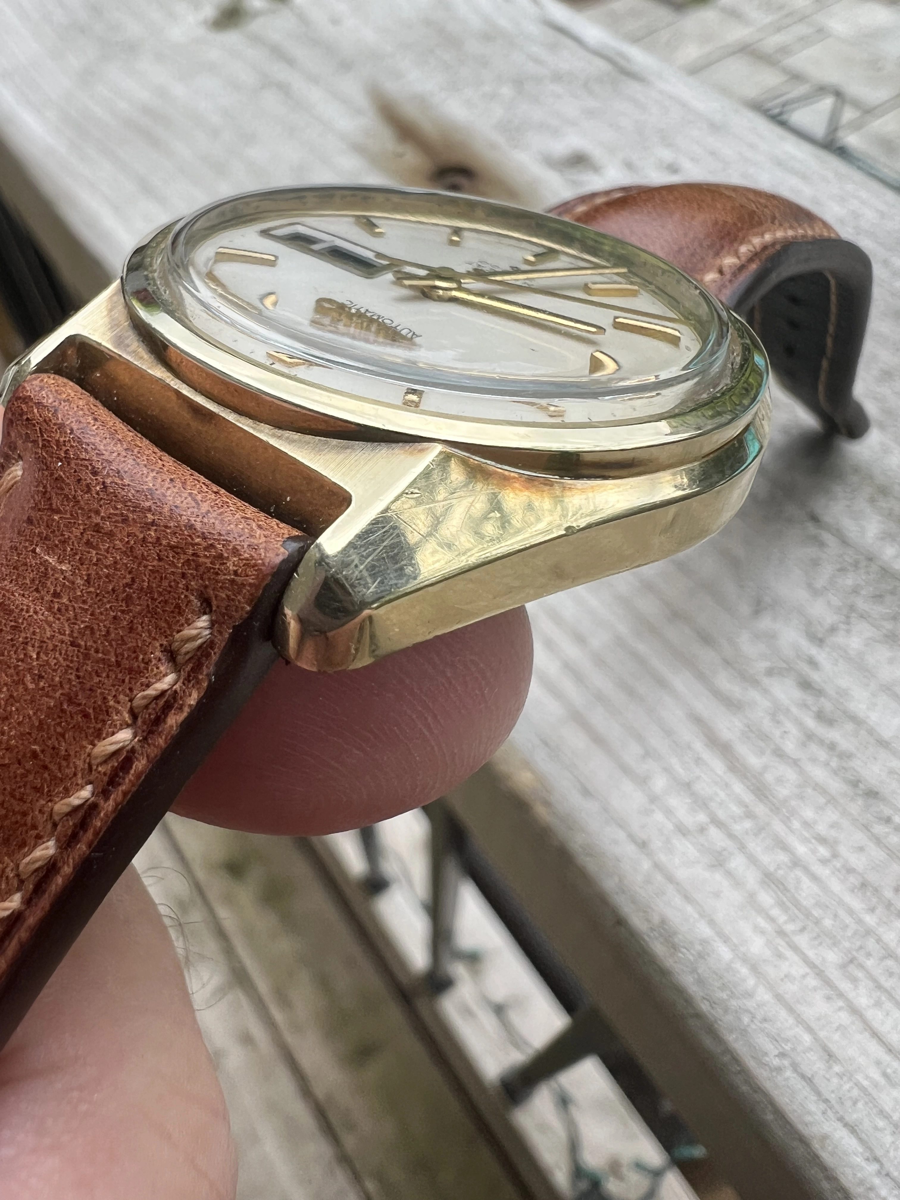 Bracelet- nice brown leather strap with minimal wear.