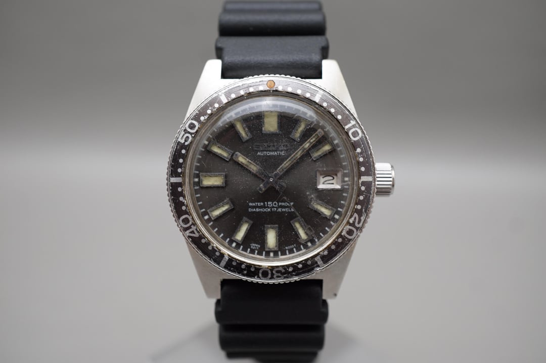 Timestamp: https://imgur.com/a/qtMTOEO For sale is a Seiko 6217-8001 62Mas Big Crown Horseshoe Back Automatic Watch First Diver Original Movement: Mechanical (Automatic) Condition: Used Strap: New Seiko DAL2BP Rubber Box: None Warranty card: None Manual: None Big crown 62MAS, with the horseshoe style caseback. Original condition, service history unknown, seconds hand lume missing and bezel is stuck. Serial dates production to June 1967, nice worn vintage condition. Approximate measurements: Case diameter: 38mm (excluding crown) Lug width: 19mm Lug to lug: 46.5mm Thickness: 14mm Asking $2650 USD including tracked shipping to US. UPS Expedited/Express, Canadian, and global shipping available at an additional cost. Payment via Wise, crypto, wire, e-Transfer (for Canadians), or PayPal Invoice (+3.9%). No trades and please comment before messaging.