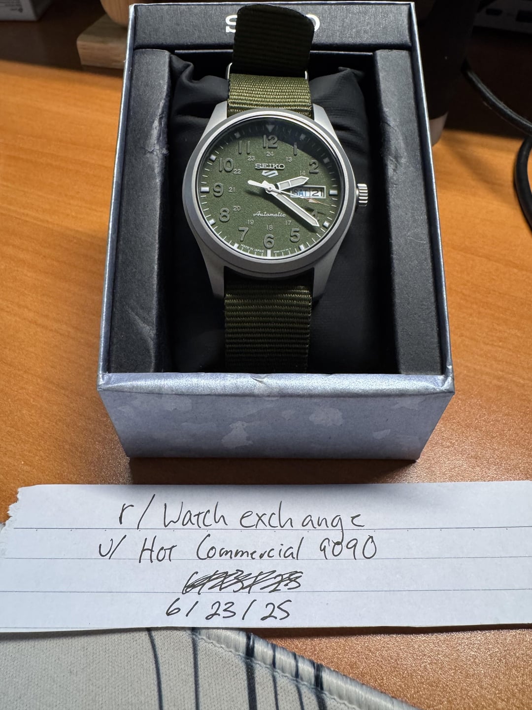\[Price Reduced\] Hello [r/Watchexchange](https://www.reddit.com/r/Watchexchange/) Selling a Pre-owned like new Seiko 5 SRPG33 39mm automatic watch with original box and OEM strap! It has never been worn so there are zero scratches on the crystal or case! Asking $175.00 shipped insured in the USA. Open to offers but no trades please! Feel free to reach out with any questions or requests. Would be open to hop on a FT to confirm authenticity! Taking Zelle or Venmo! Thanks for looking!