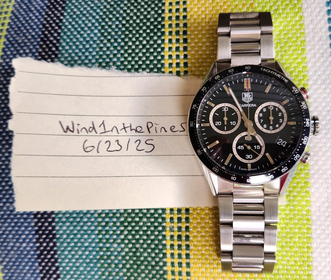 A very unique Carrera up for grabs today at an F1 price. Catch and release - a very nice watch and very hard to beat for the price, just need to free up funds for other projects. Made to commemorate the grueling Carrera Panamericana road race, this 43mm quartz Carrera is powered by the ETA 251 series movement, to my knowledge the only non-mechanical Carrera ever made.  Very convenient for today's WFH grab and go needs, which was exactly what I had in mind for it.  This watch had a battery change within the last year and is GTG.  Chrono function works perfect and the pushers reset properly. Case and bracelet are in very good pre-loved condition, shows typical desk diving marks and a bezel scratch here and there but still has a lifetime of wear left in it.  Watch only, no spare links - if you like them snug it will fit up to 7.5". Asking $950 shipped to the USA (watch is located in NH).  PayPal FF is preferred.  I have plenty of references that I can provide upon request in addition to my feedback here. Thanks for looking!