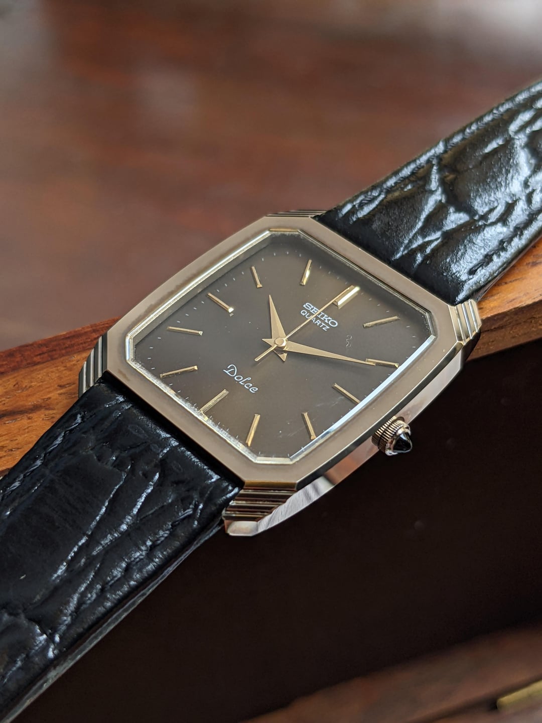 ![[WTS] Rare Jumbo Seiko Dolce in Chocolate Dial 🍫 Sword Hands ⚔️ Onyx Crown in Super Hard Alloy Case (NSAG) + Sapphire Crystal from February 1982 🗓️ for sale 💵 $245 (Shipped) 🚢 7](https://cdn-cf.watchpatrol.net/600x600/img/full/f9fd647badb1bb1773f55346ee1cc8128795d4fb.jpg)