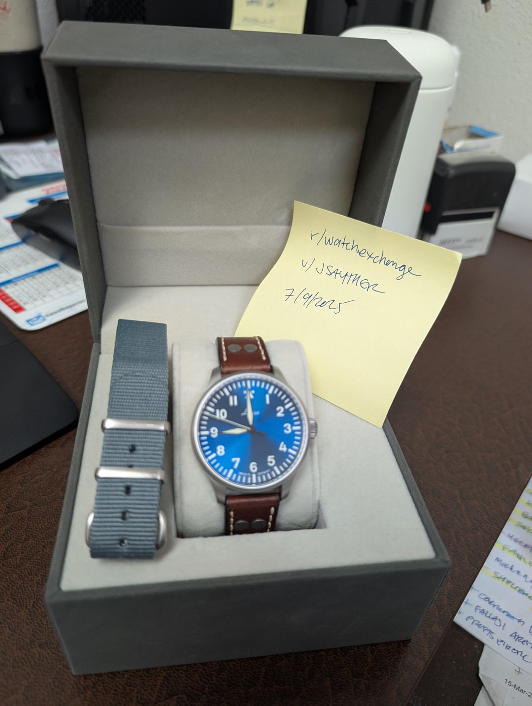 Another one on the chopping block, this one's been sitting in the box pretty much since I traded for it. It's a great watch just didn't vibe with it on the wrist. Pretty close to new-in-box. It will come with the original grey nato as well as a Laco leather strap. Here's a [link](https://www.flickr.com/photos/195944503@N06/shares/698iw0tTH3) to the photo album. Here's the [timestamp](https://flic.kr/p/2rfKqRQ). Looking to get $299 shipped in the CONUS and I can take venmo, zelle or PayPal. Let me know if you have any questions or need any other pictures.