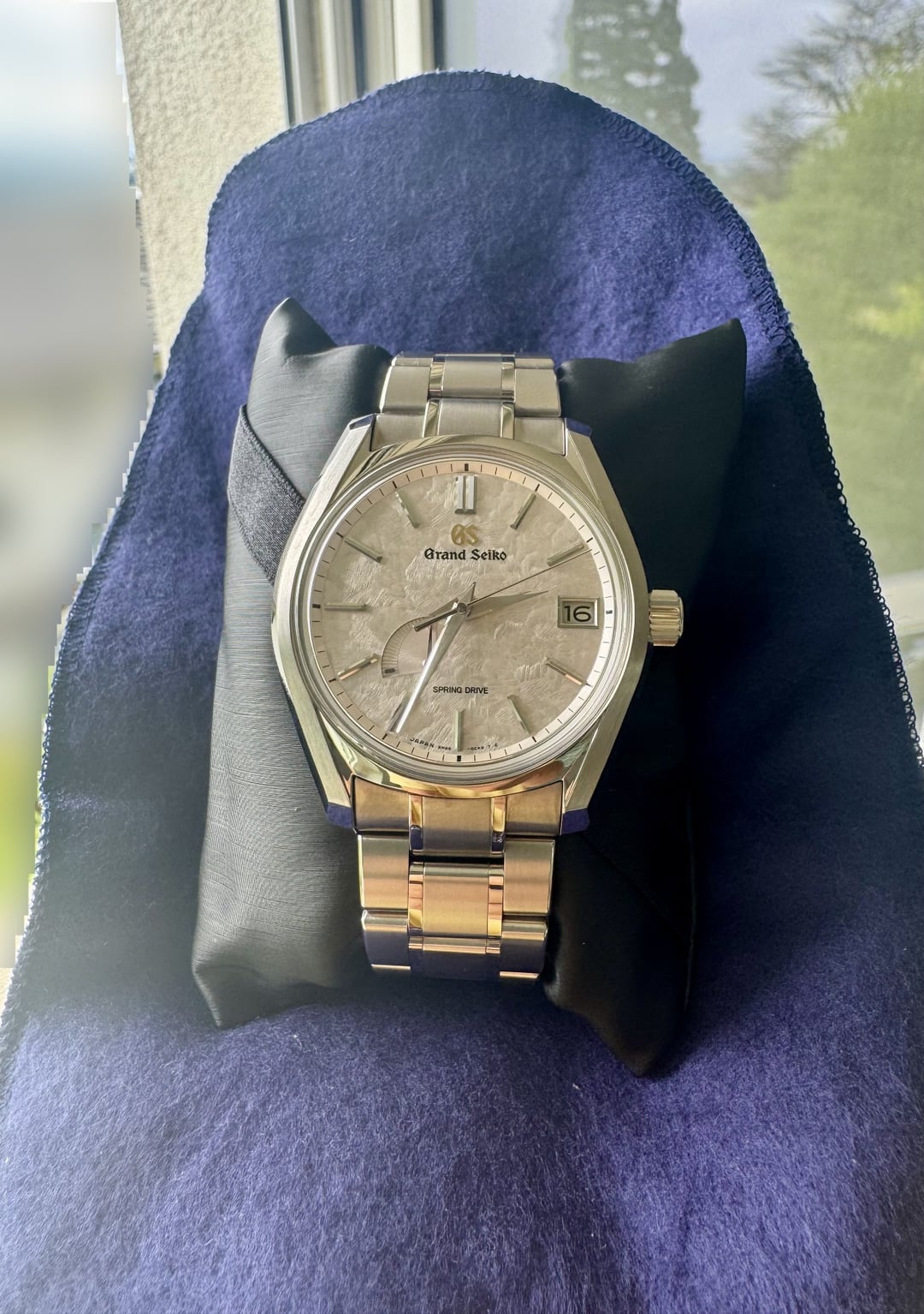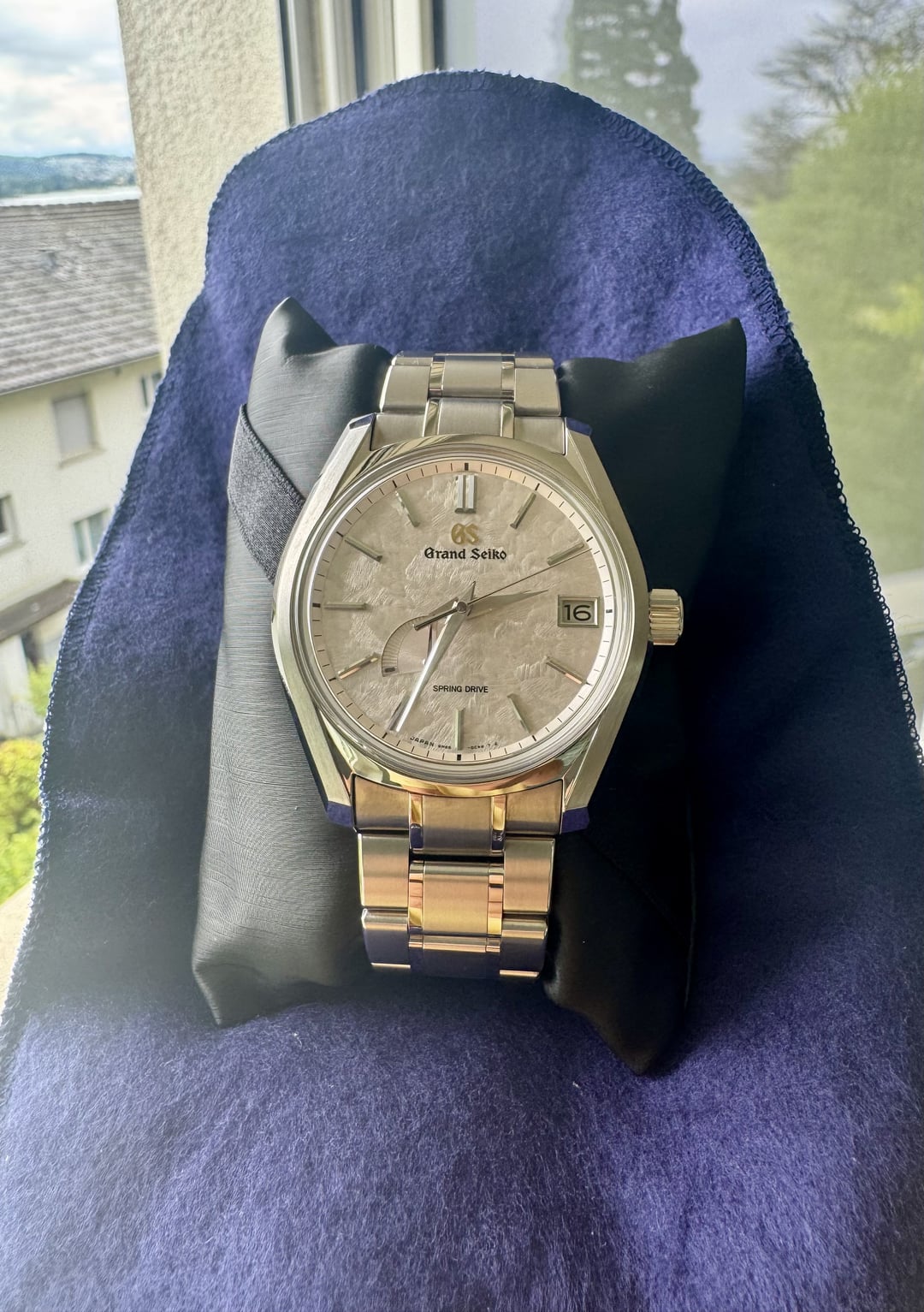 Hi r/Watchexchange, Not in the majority here, I am located in Europe/Switzerland, I can ship worldwide with UPS, insured, against signature and CO2 neutral. And it's not even that expensive. 🔹 Grand Seiko SBGA413 “Shunbun” – Spring Drive (Cherry Blossom) 📸 [**Album and Timestamp**](https://imgur.com/a/grand-seiko-shunbun-sbga413-xseJThC) Condition: Unworn (beside during the sizing at the boutique) Note: two of the three spare links have a hairline visible at a certain angle as highlighted on the two last pictures. I don't know where it's coming from. Maybe the spare spring bars. Includes: Full set – box, papers, original invoice. Reason: Probably my only missteps in the hobby… so far ! I bought it on a whim in holidays and have only worn it once during the bracelet sizing at the boutique. Since then, it’s been stored in the safe at the bank. Price: 4'750CHF / 5’090€ / $5'900 🔁 Trades: I’m mainly looking to sell, but I’d consider a trade for a Cartier Santos (Medium or Large) with the classic white dial or a Glashutte Panomaticlunar. 📦 Shipping: Ships from either Switzerland or France. As stated in the little introduction, the shipping costs aren’t included in the price. But it can always be discussed. 💰 Payment: Bank transfer (preferred), PayPal, Crypto, etc. – as long as it’s in-line with the rules here. The price stated is “net-to-me”, so if there are fees, it’s at buyer’s charge. 🙋 About Me: Private collector based in CH/FR (Europe). Happy to provide references (I have matching-username with numerous transactions on a couple local second-hand website, plus eBay). Feel free to reach out via DM or drop a comment if you have questions or need more pictures. Thanks for looking!